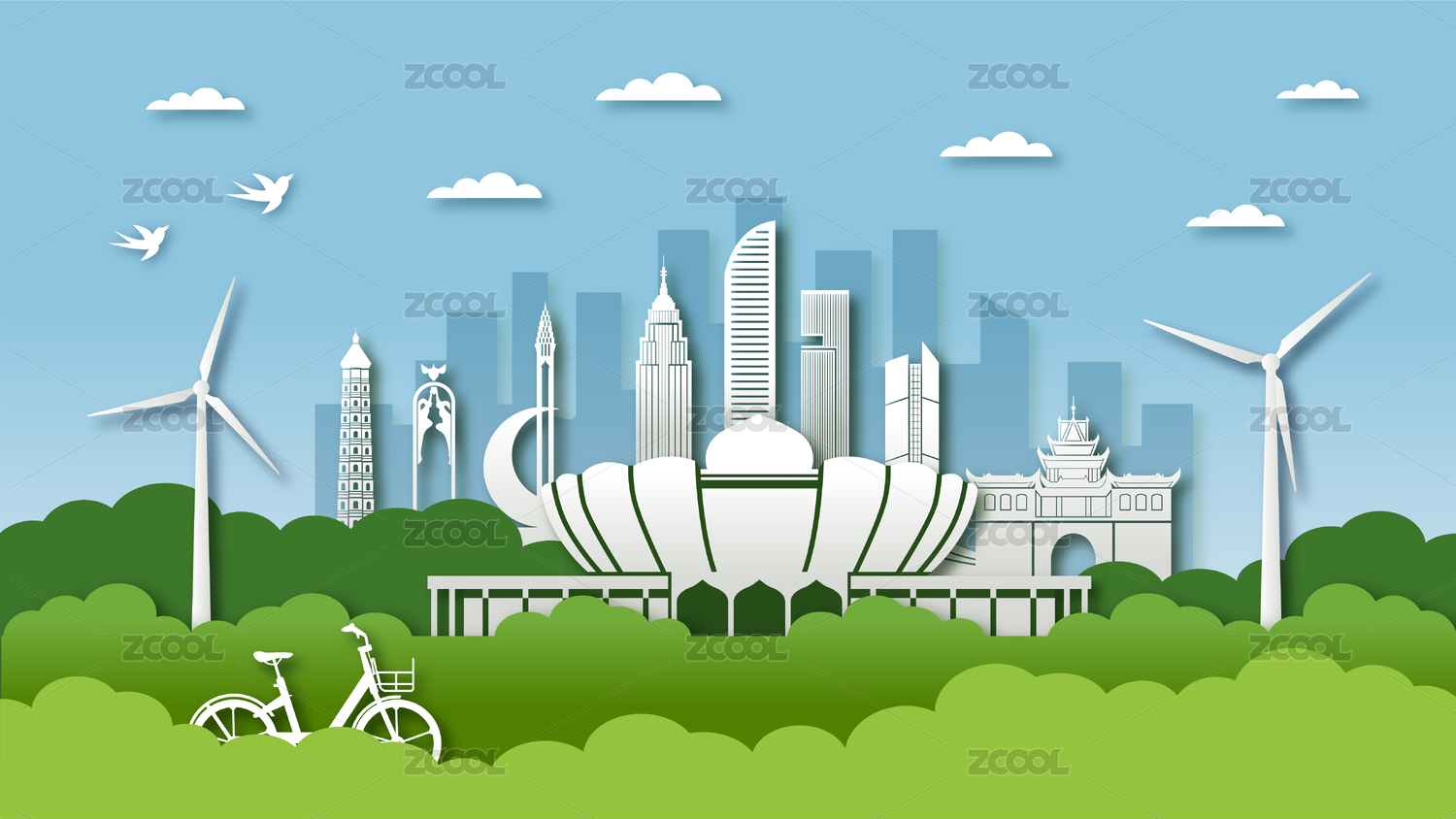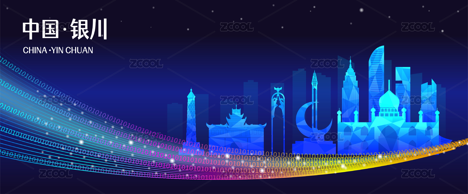 中國(guó)寧夏銀川市網(wǎng)絡(luò)科技城市矢量插畫