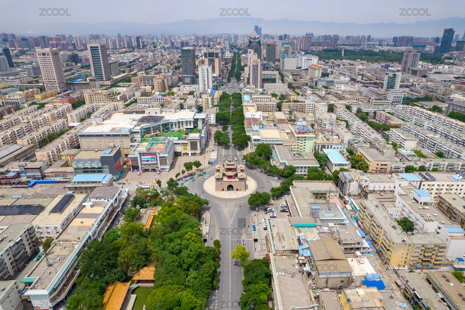 航拍中國(guó)寧夏自治區(qū)銀川市鼓樓