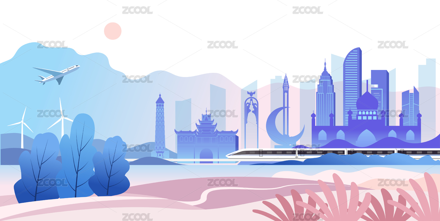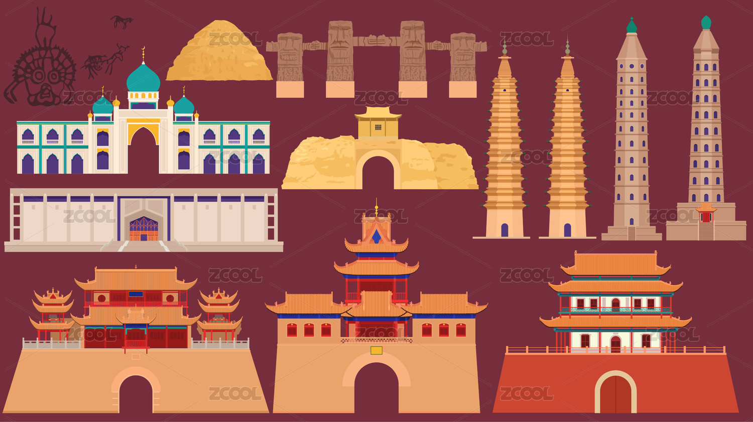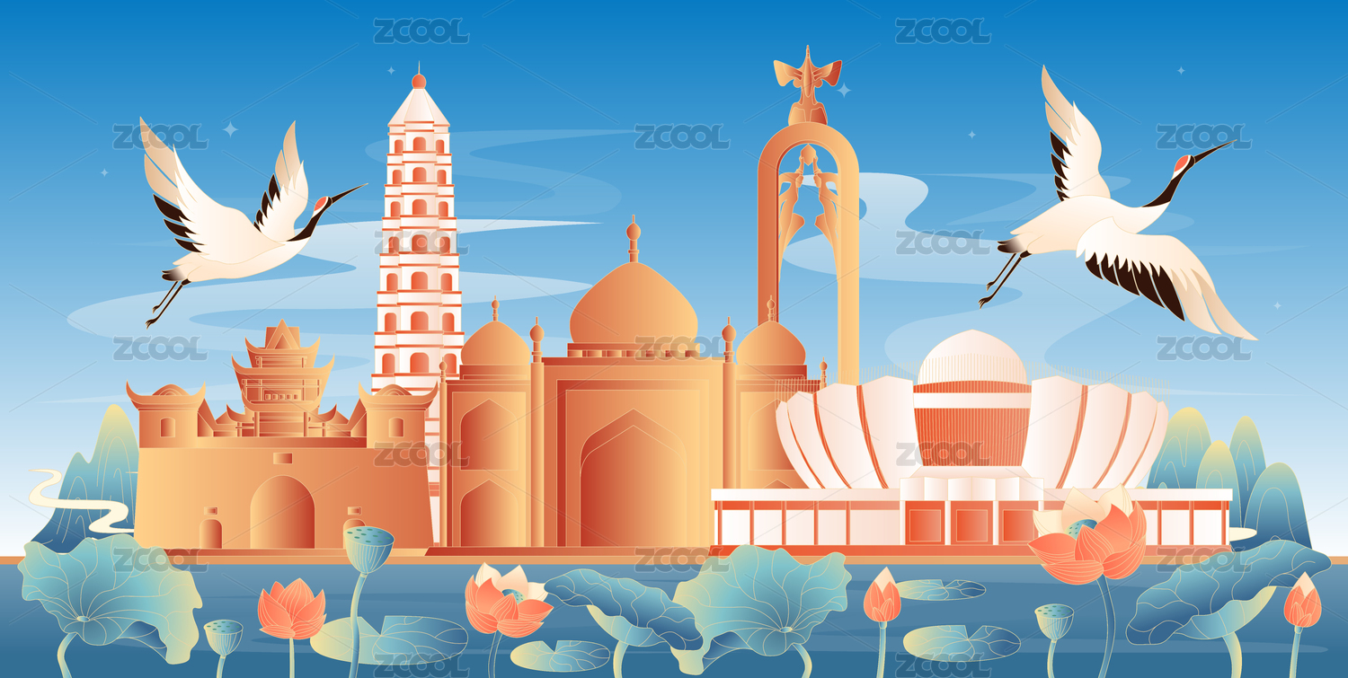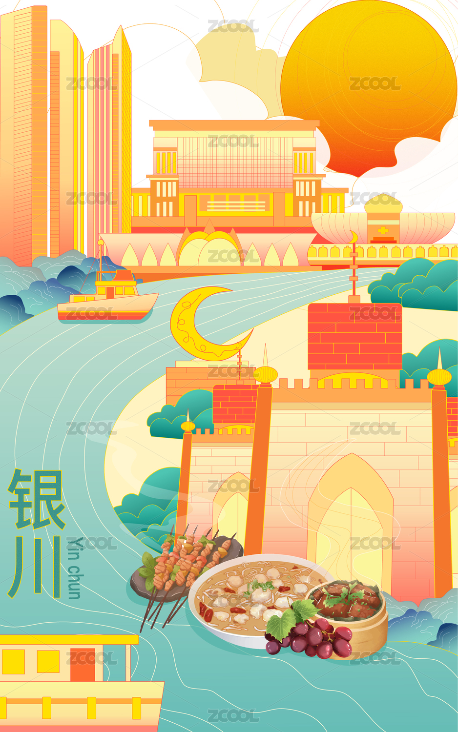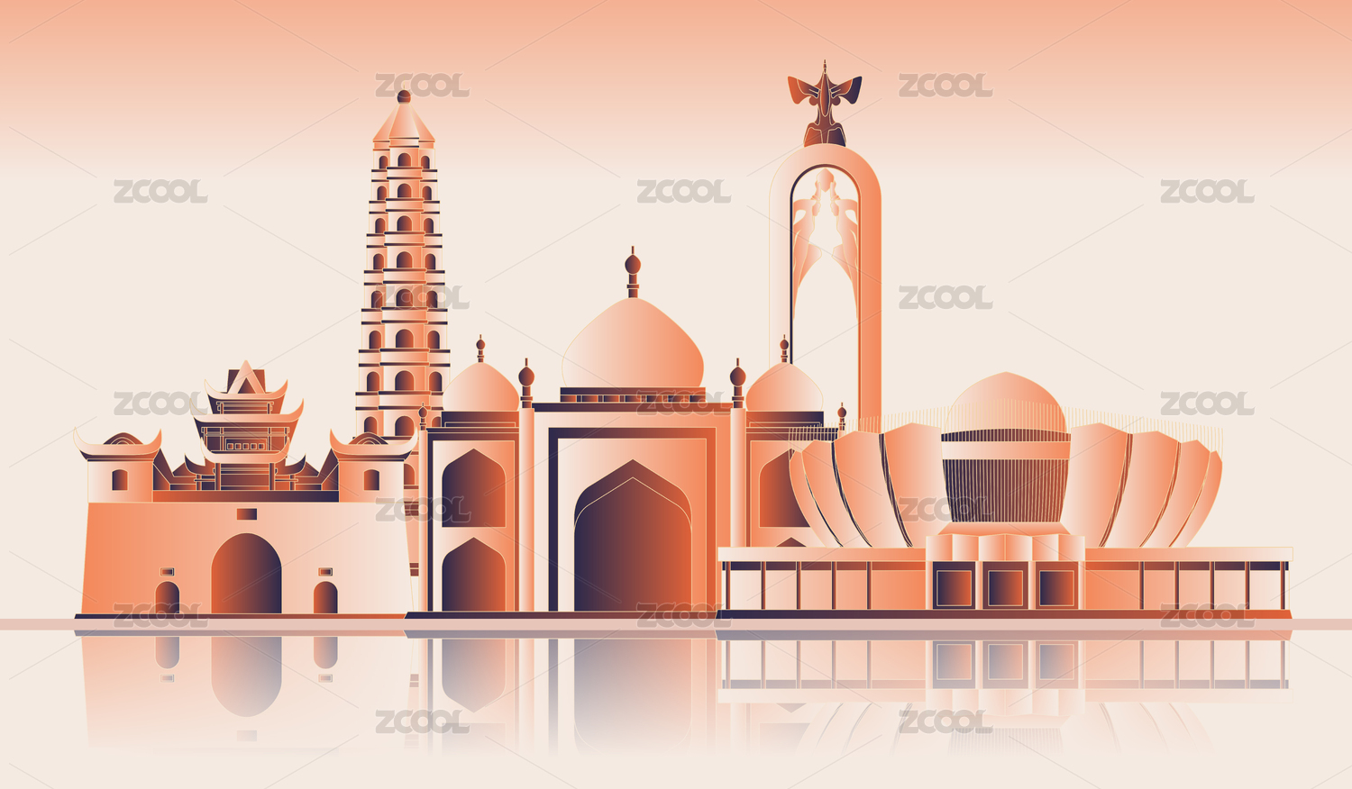 銀川城市旅游地標(biāo)插畫設(shè)計(jì)