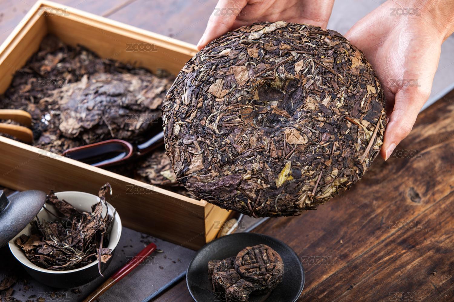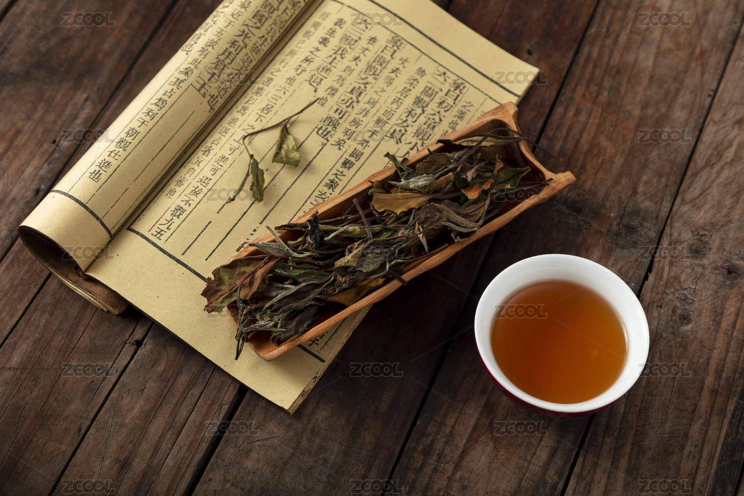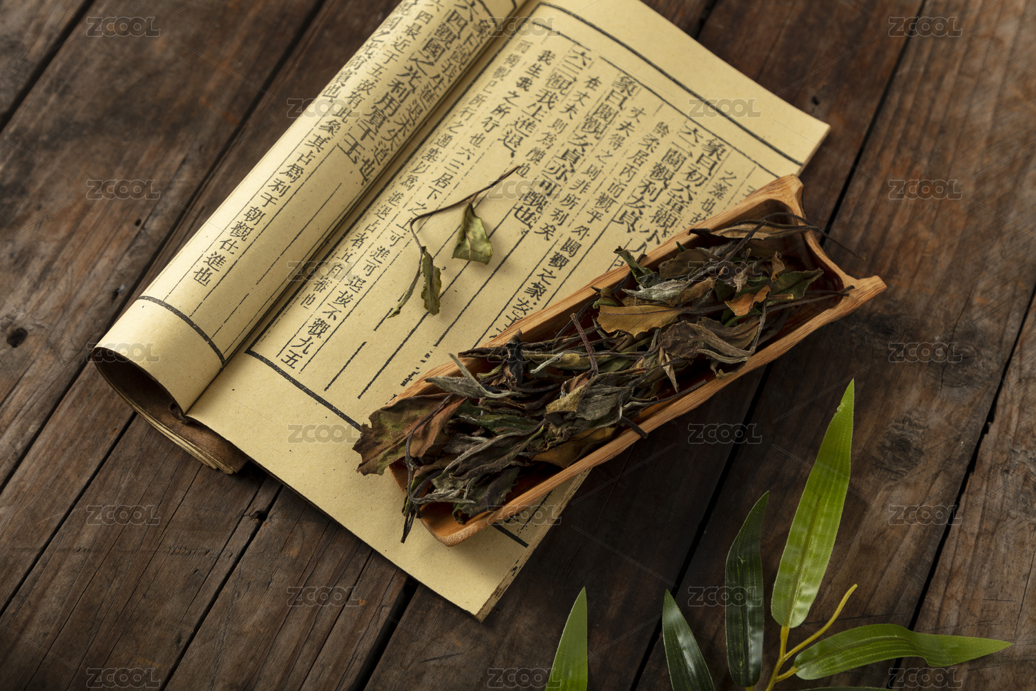 木紋背景中的古書(shū)籍上放著的老白茶壽眉