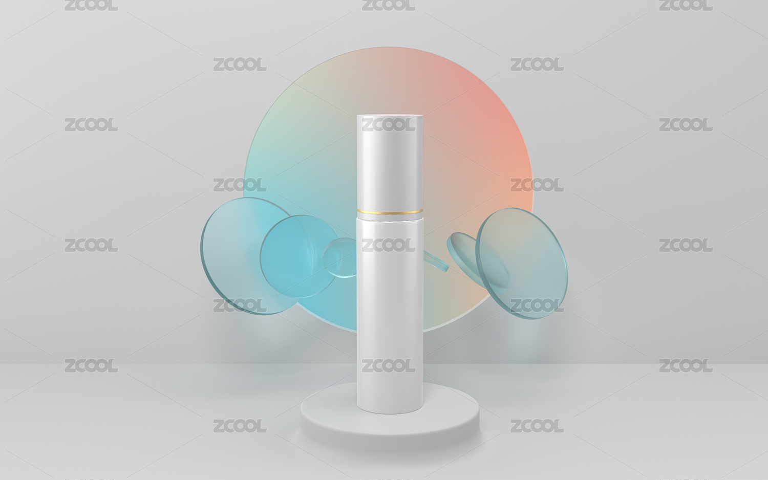 白底紫發(fā)紅唇少女手持白瓶化妝品唯美插畫