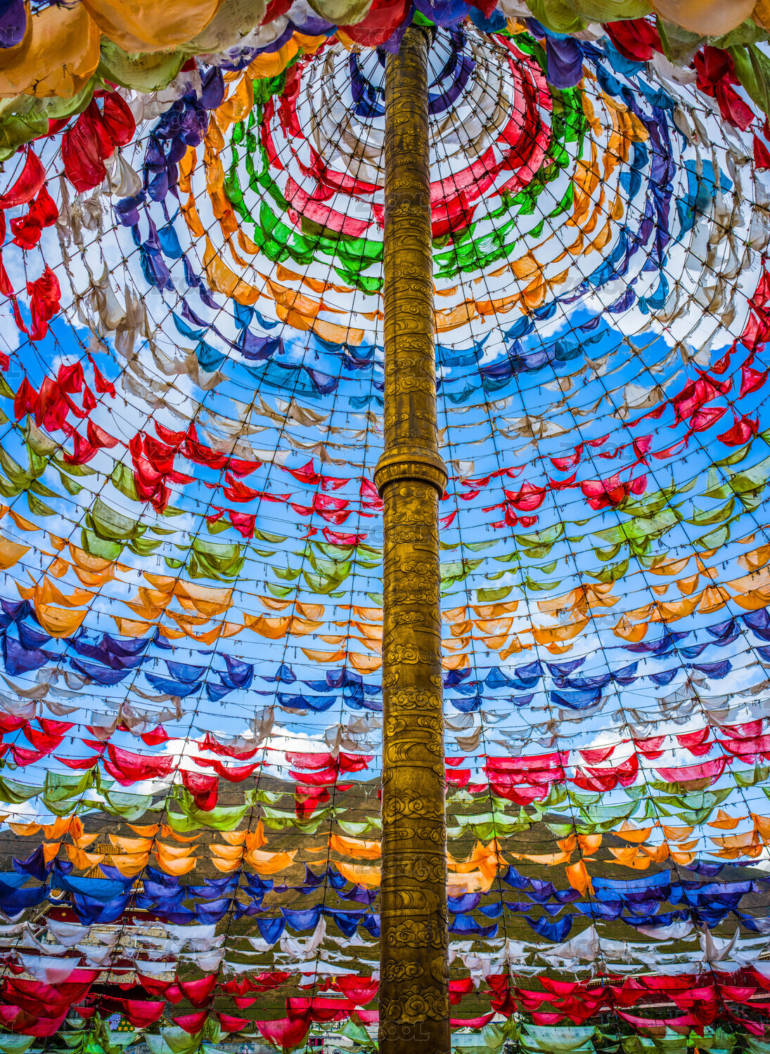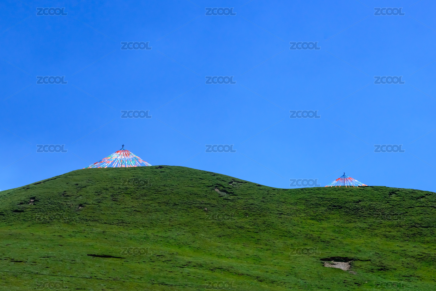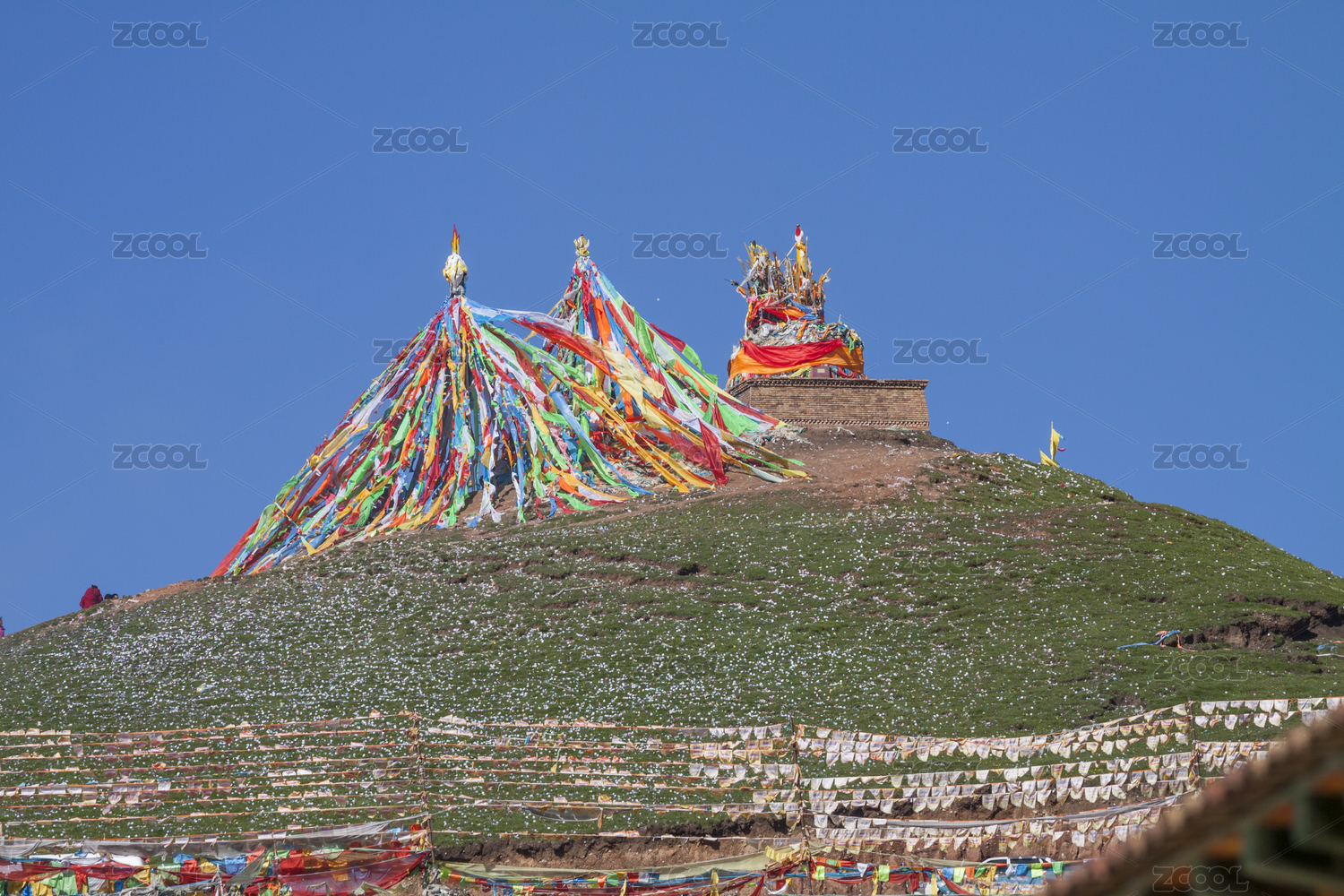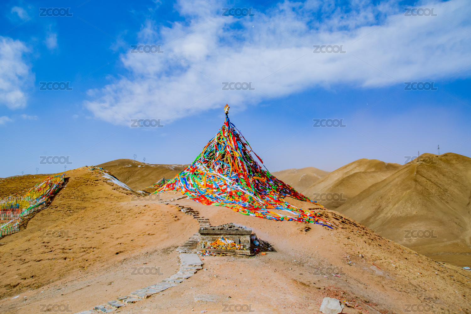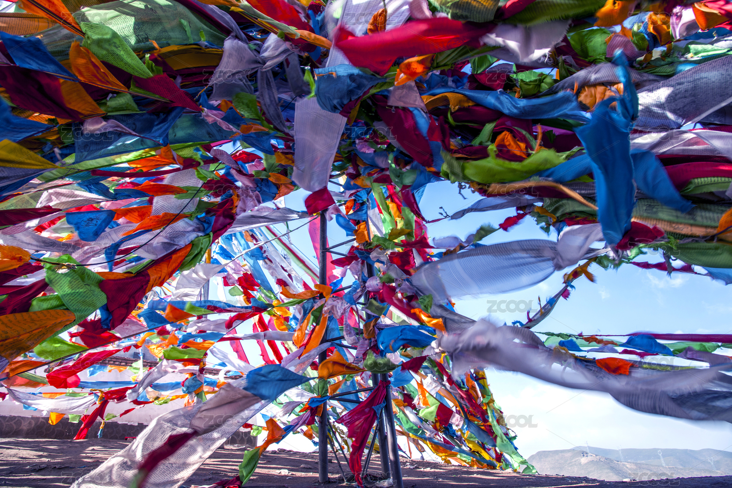 青海海南湟源縣日月山上飄動的經幡