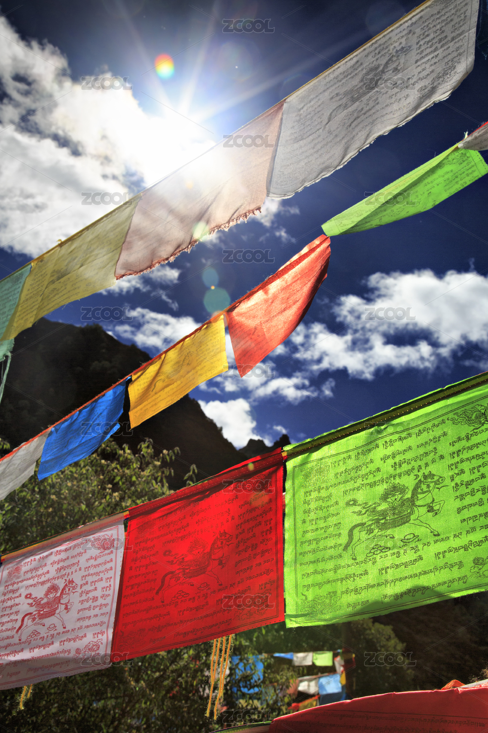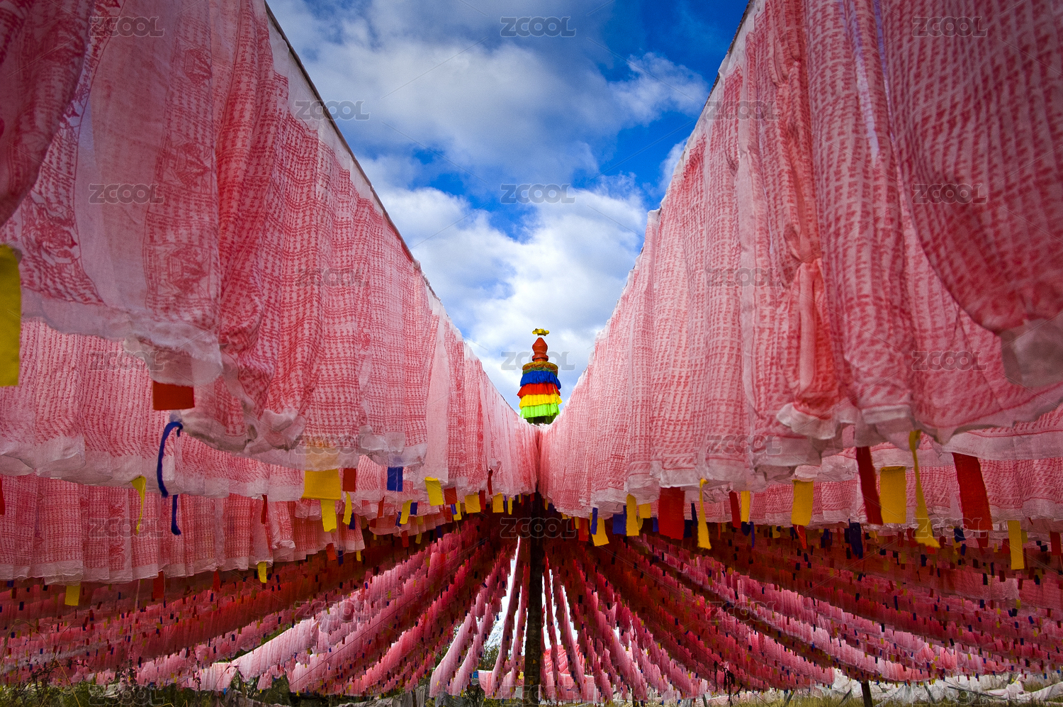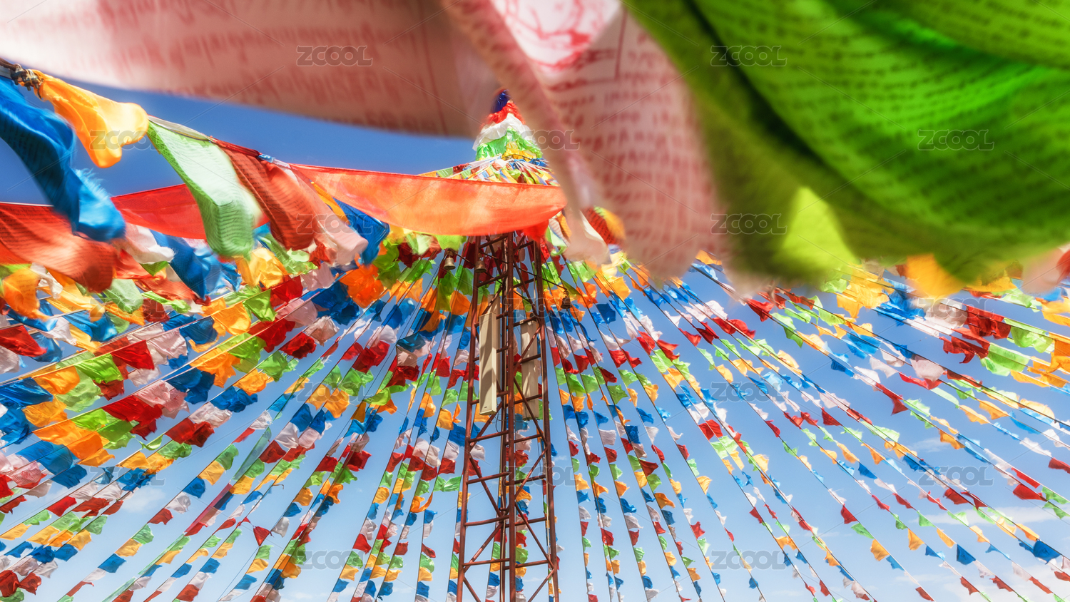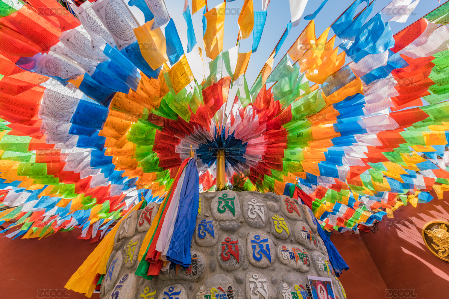 中國(guó)寺廟里在空中飄舞的彩色經(jīng)幡