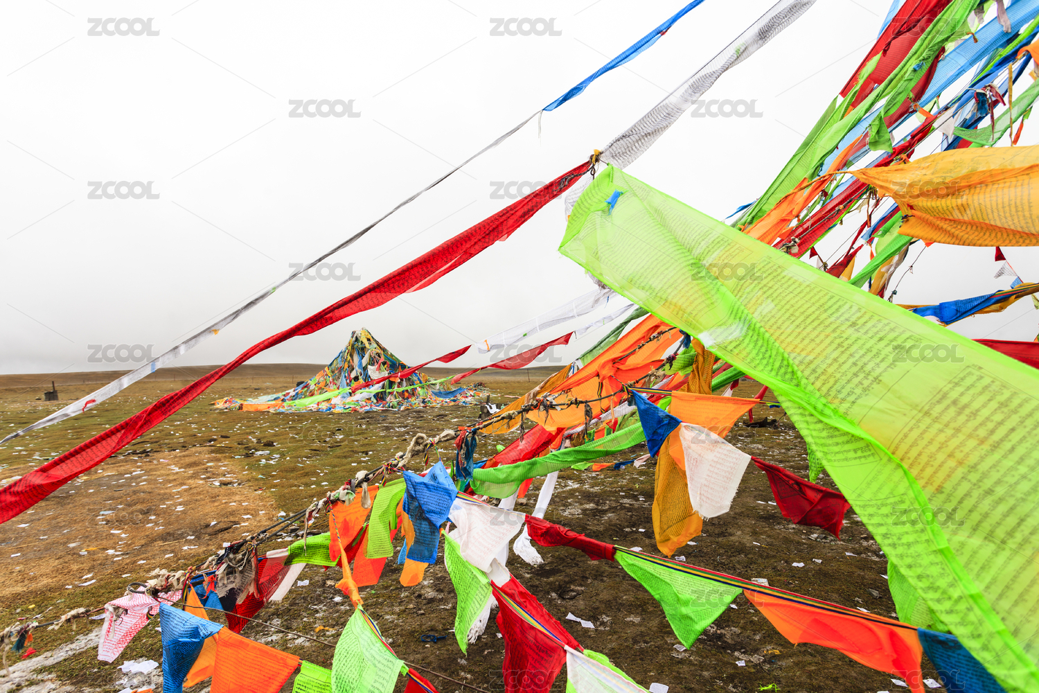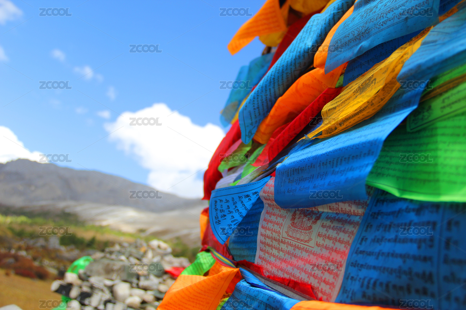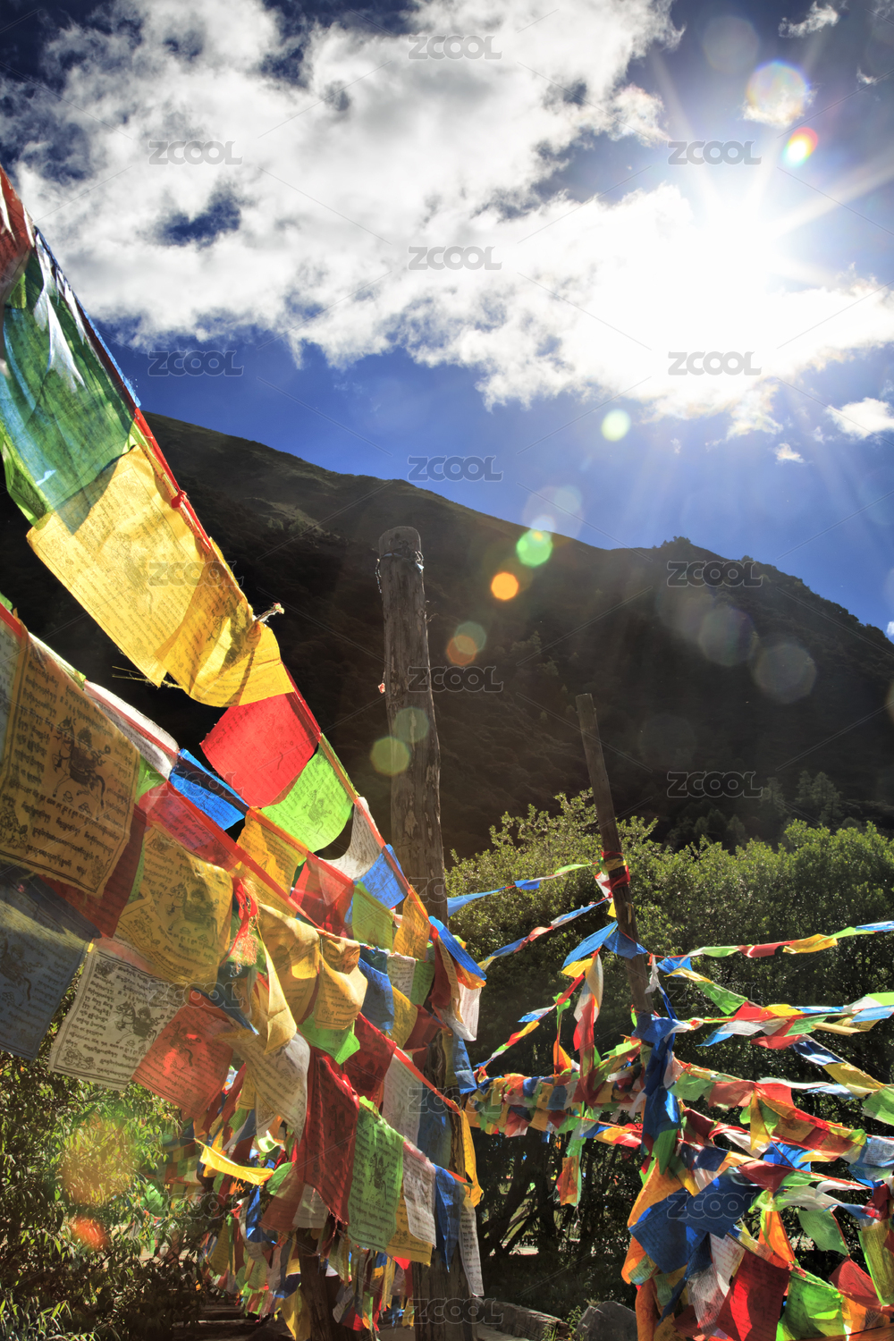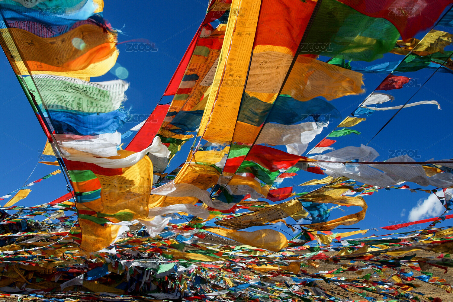 中國(guó)寺廟里在空中飄舞的彩色經(jīng)幡