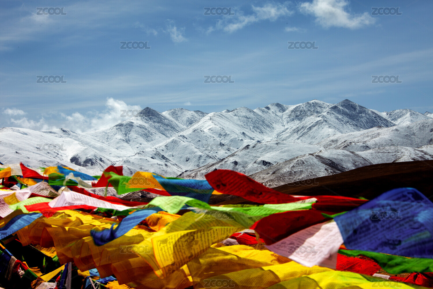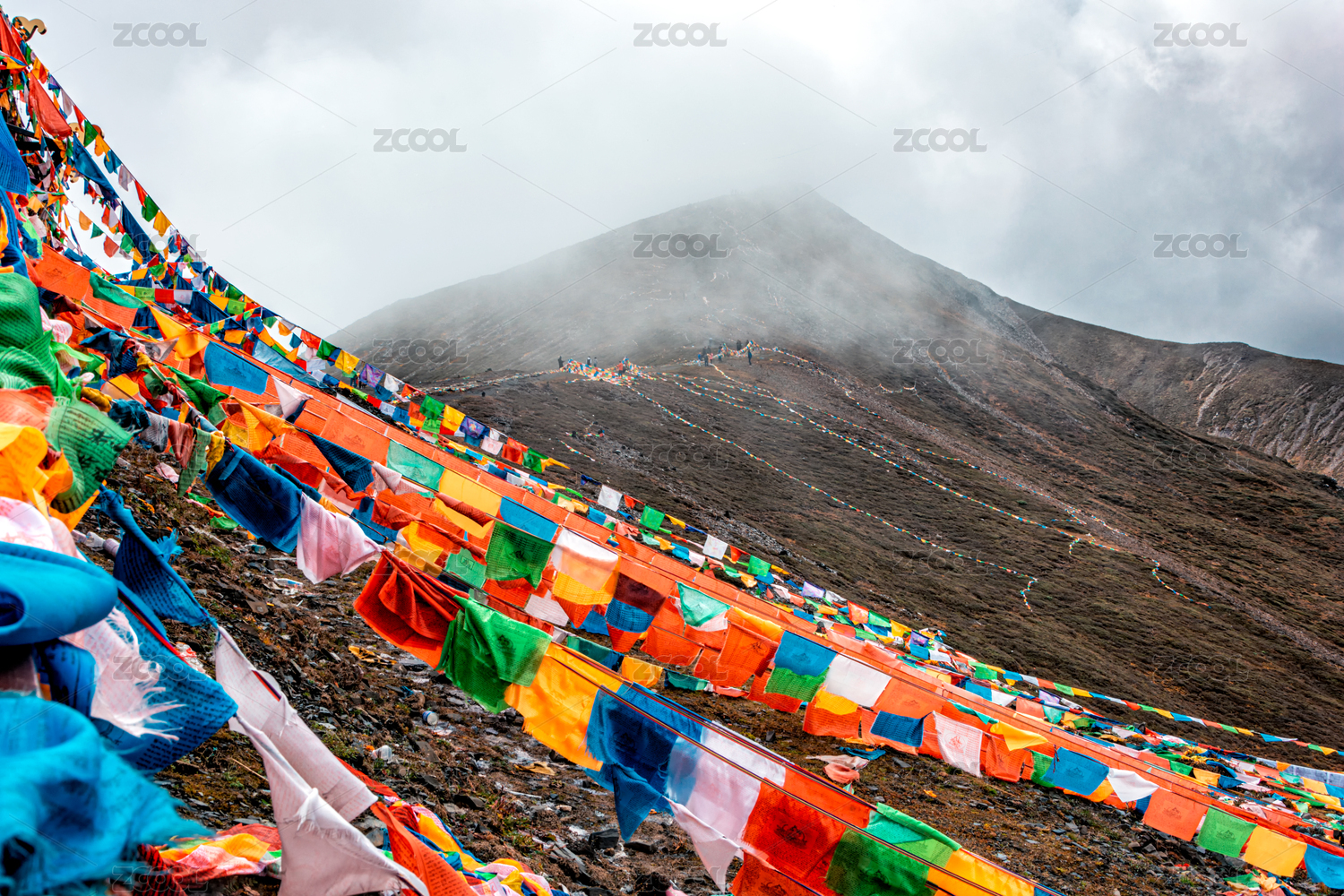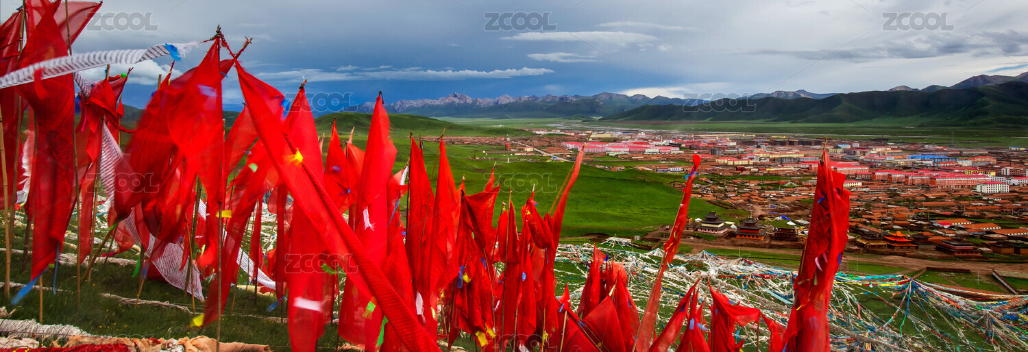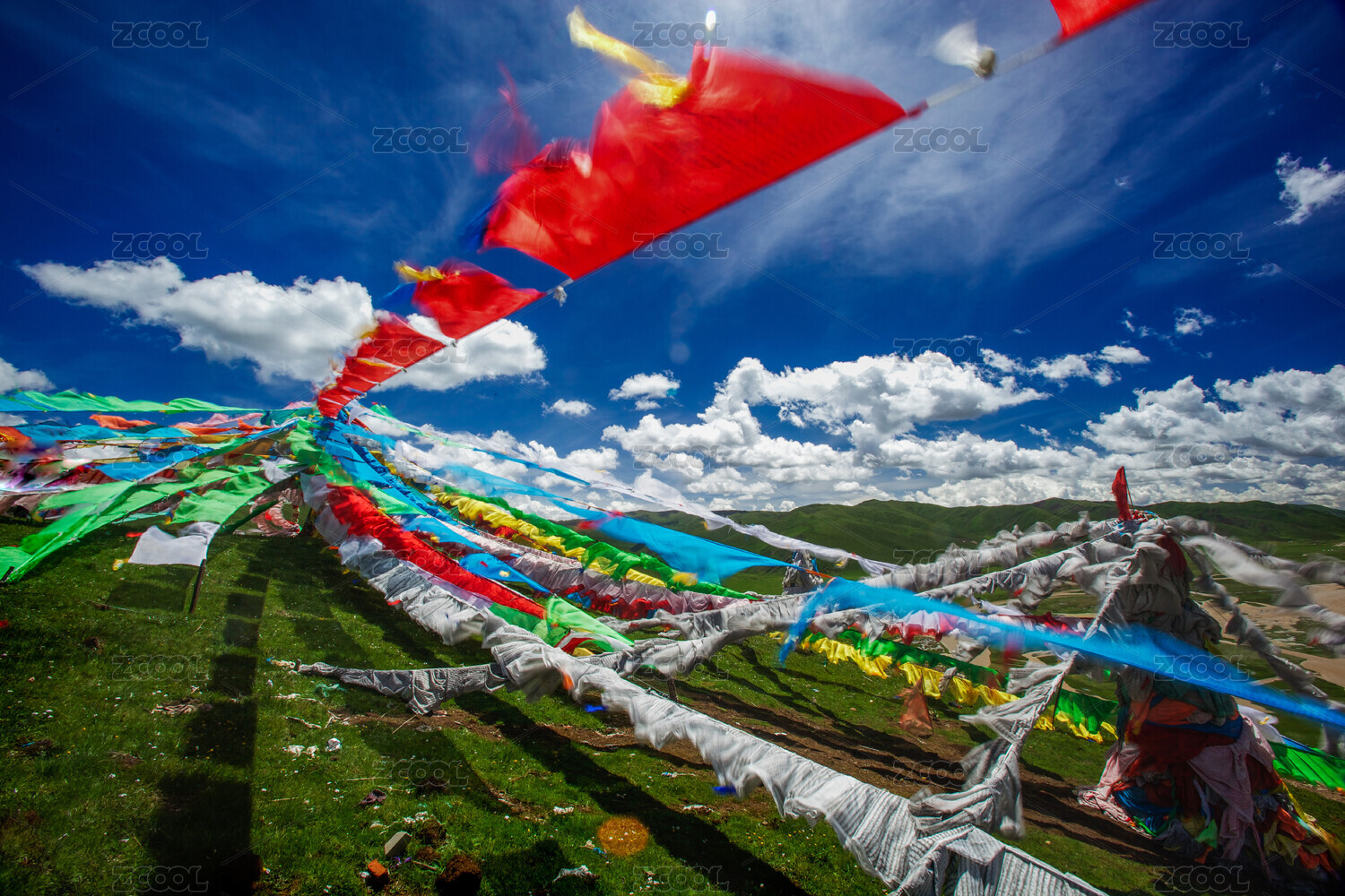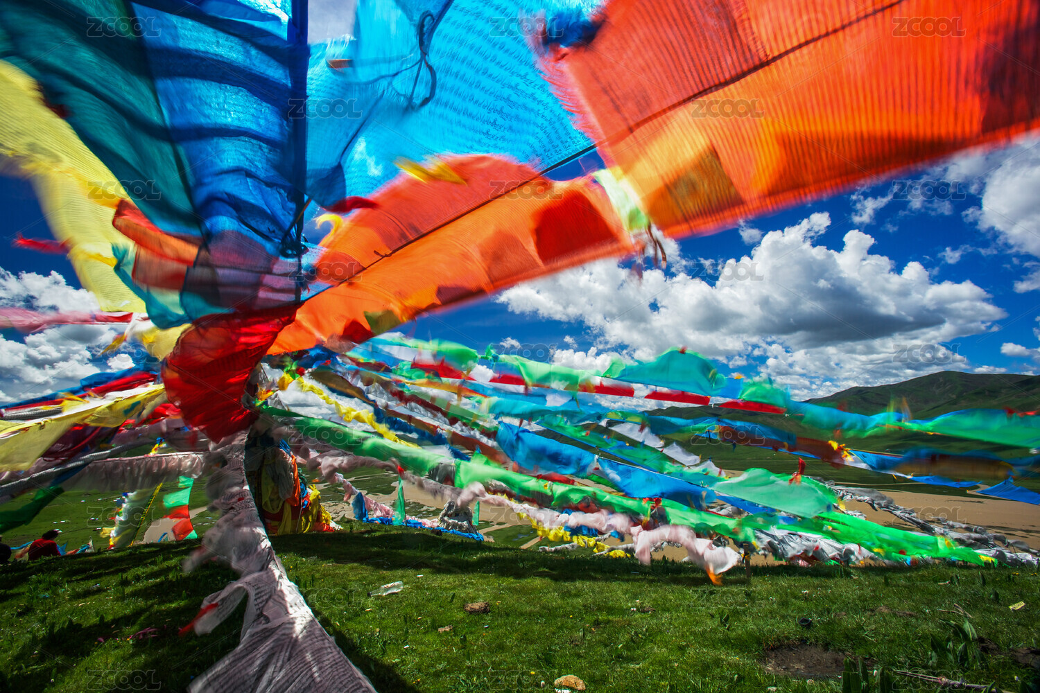 中國(guó)寺廟里在空中飄舞的彩色經(jīng)幡