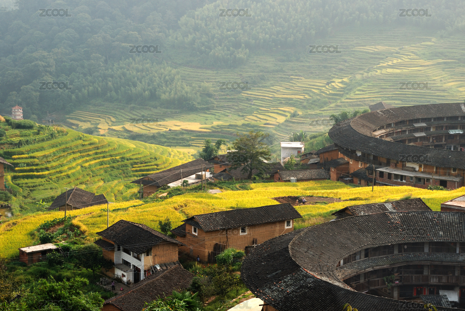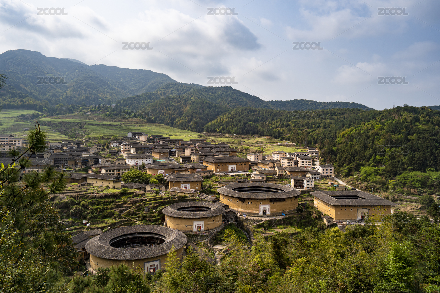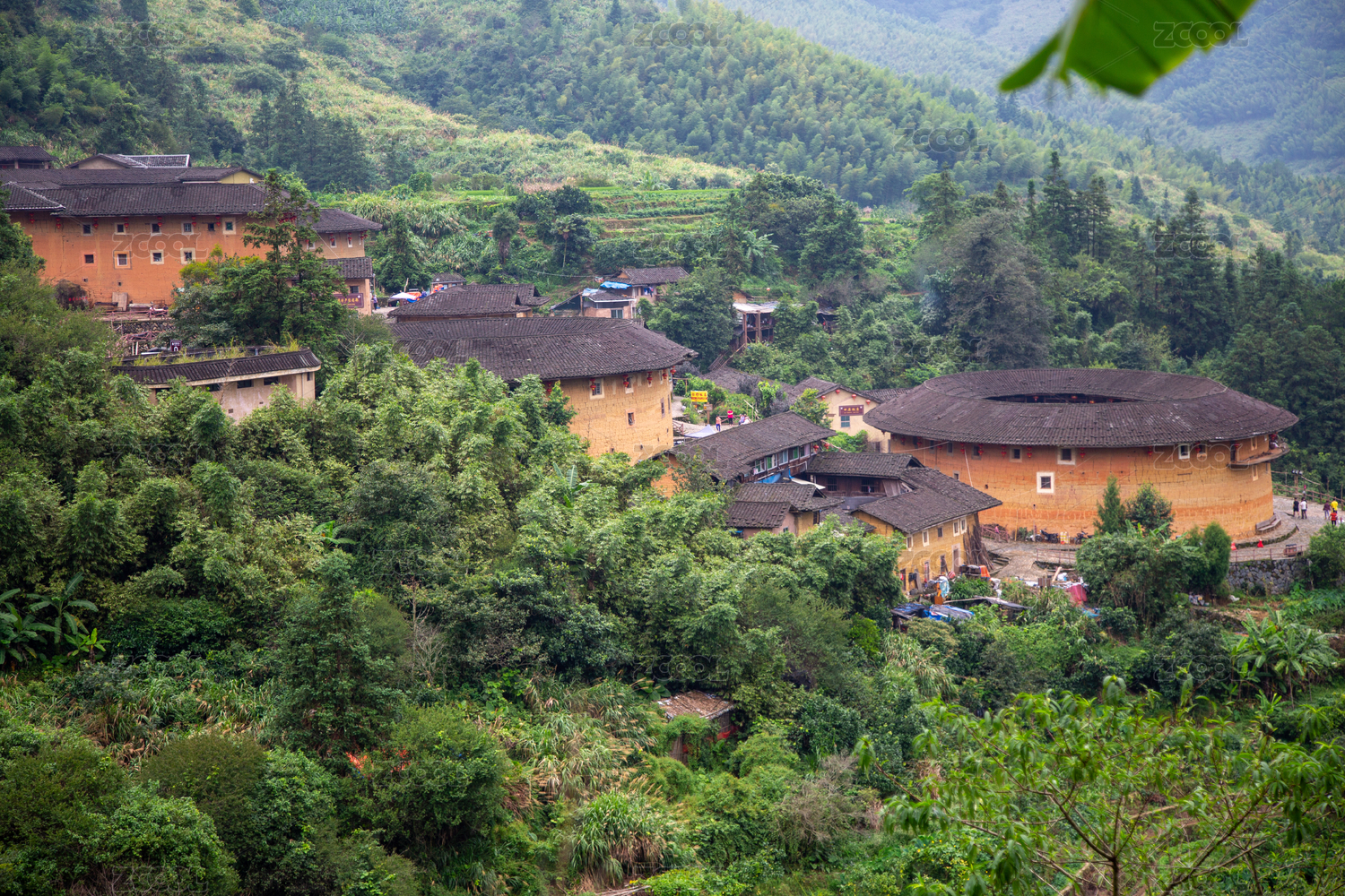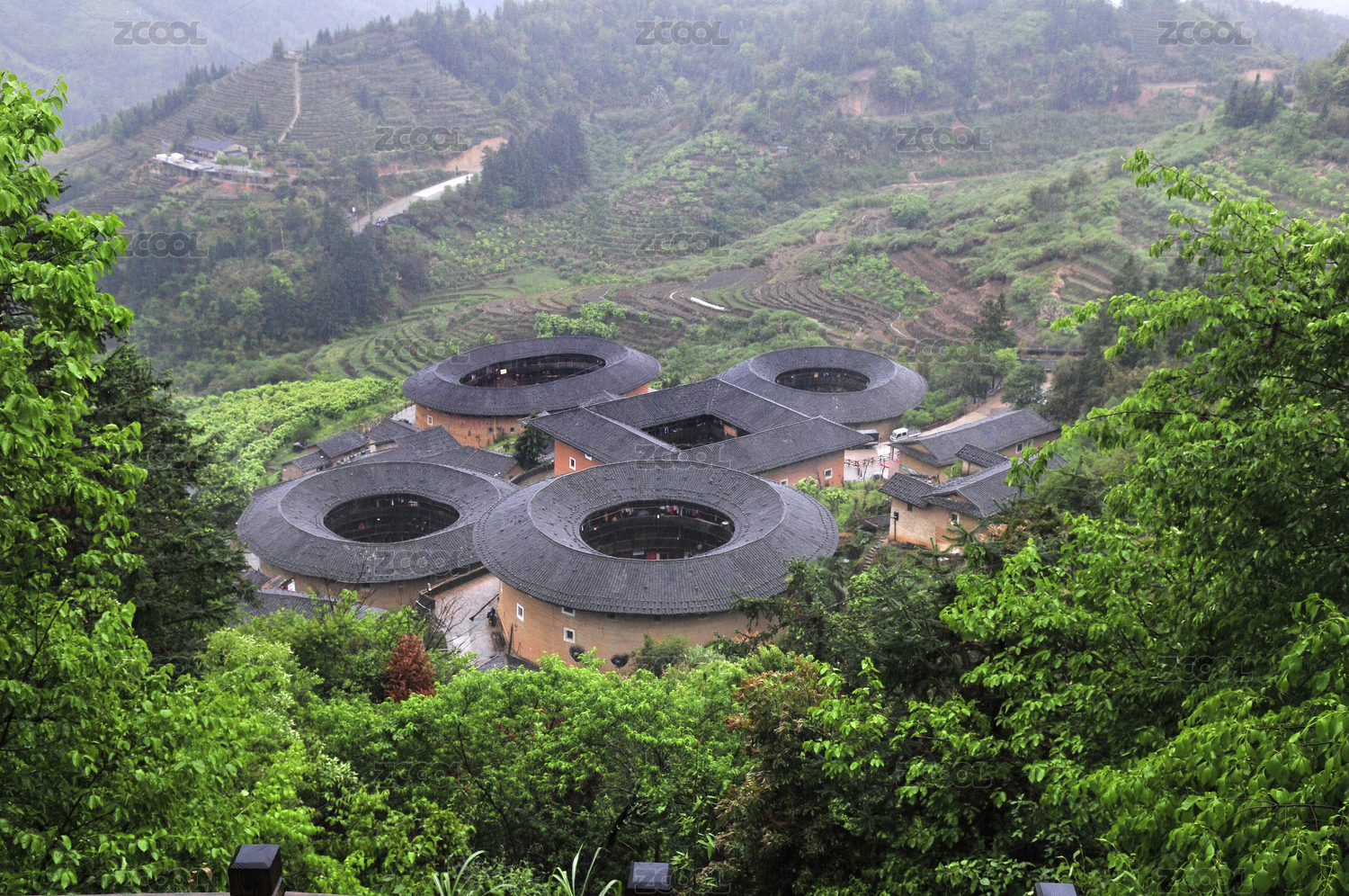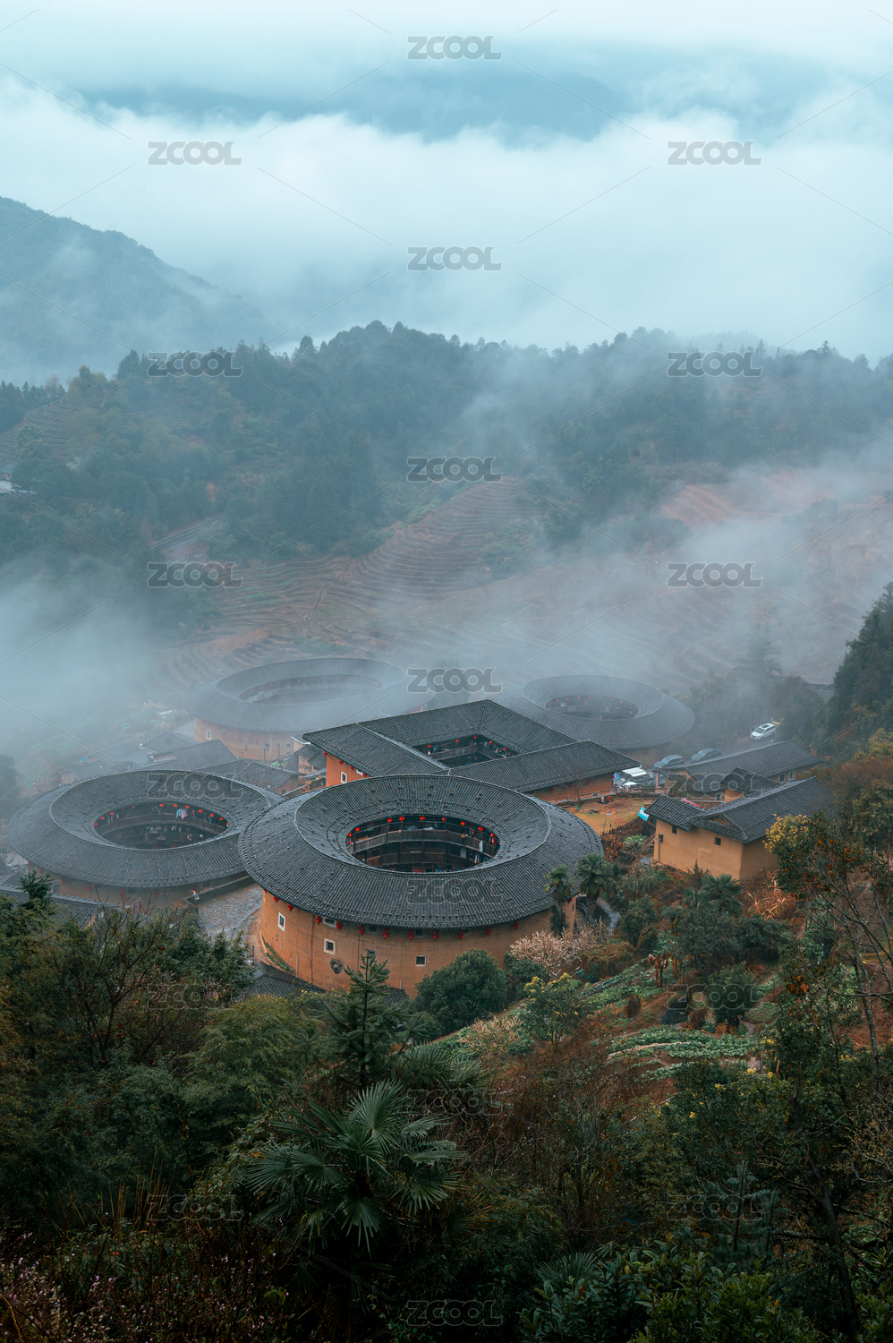 福建南靖山間土樓與綠樹環(huán)繞