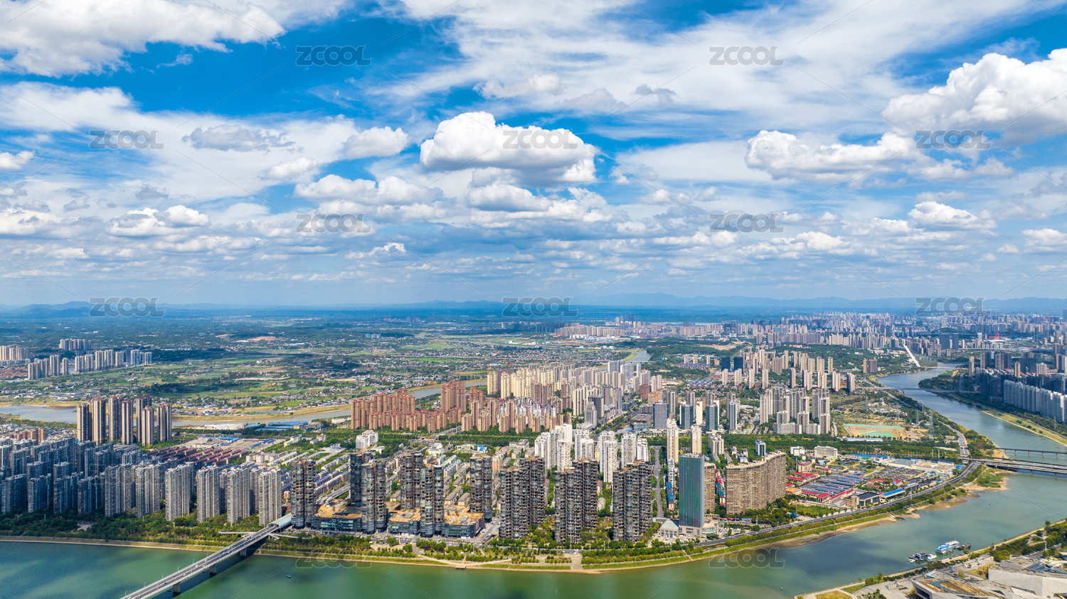 湖南長沙瀏陽河入江口城市風(fēng)光