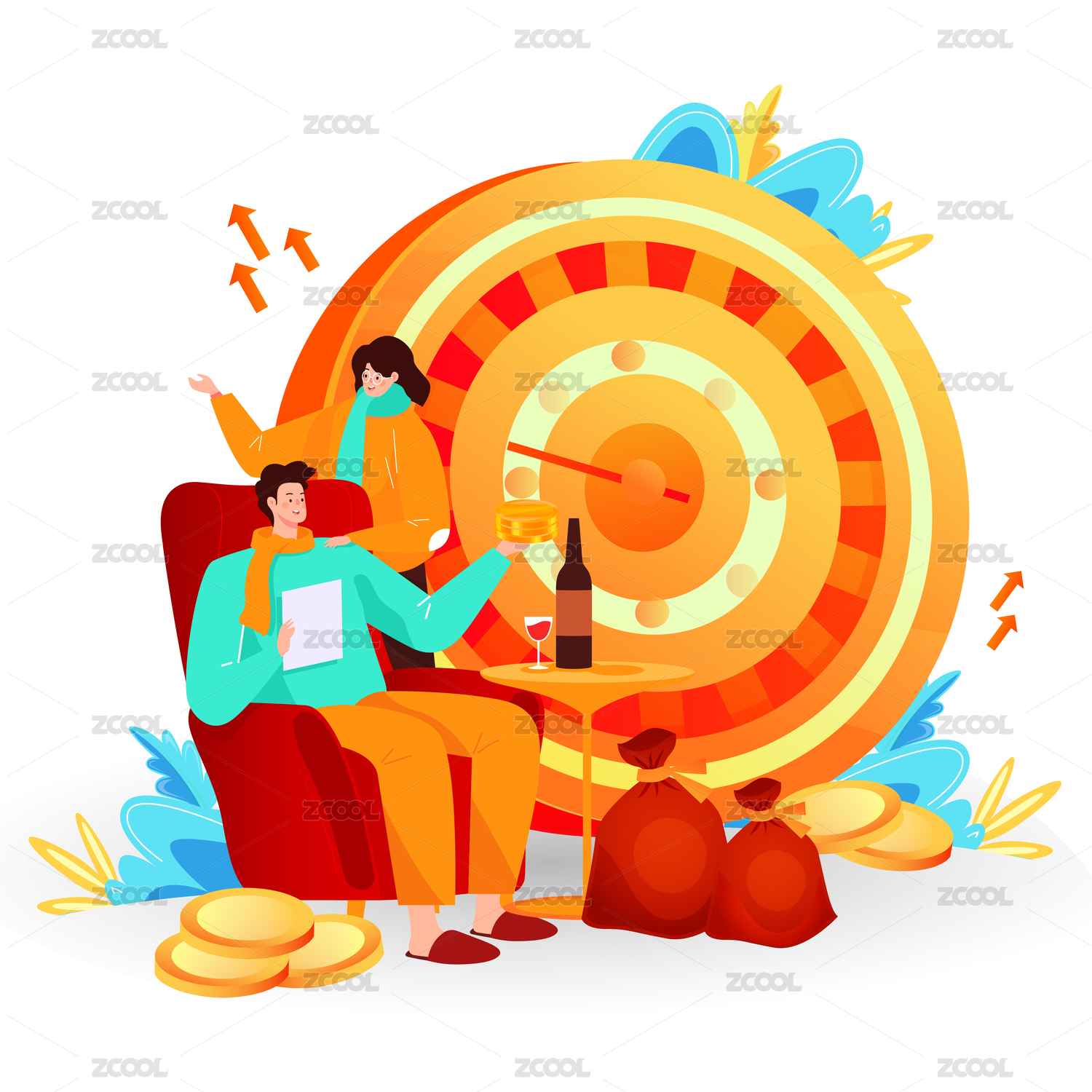 卡通幸運(yùn)抽獎(jiǎng)電商金融活動(dòng)漸變背景矢量插畫