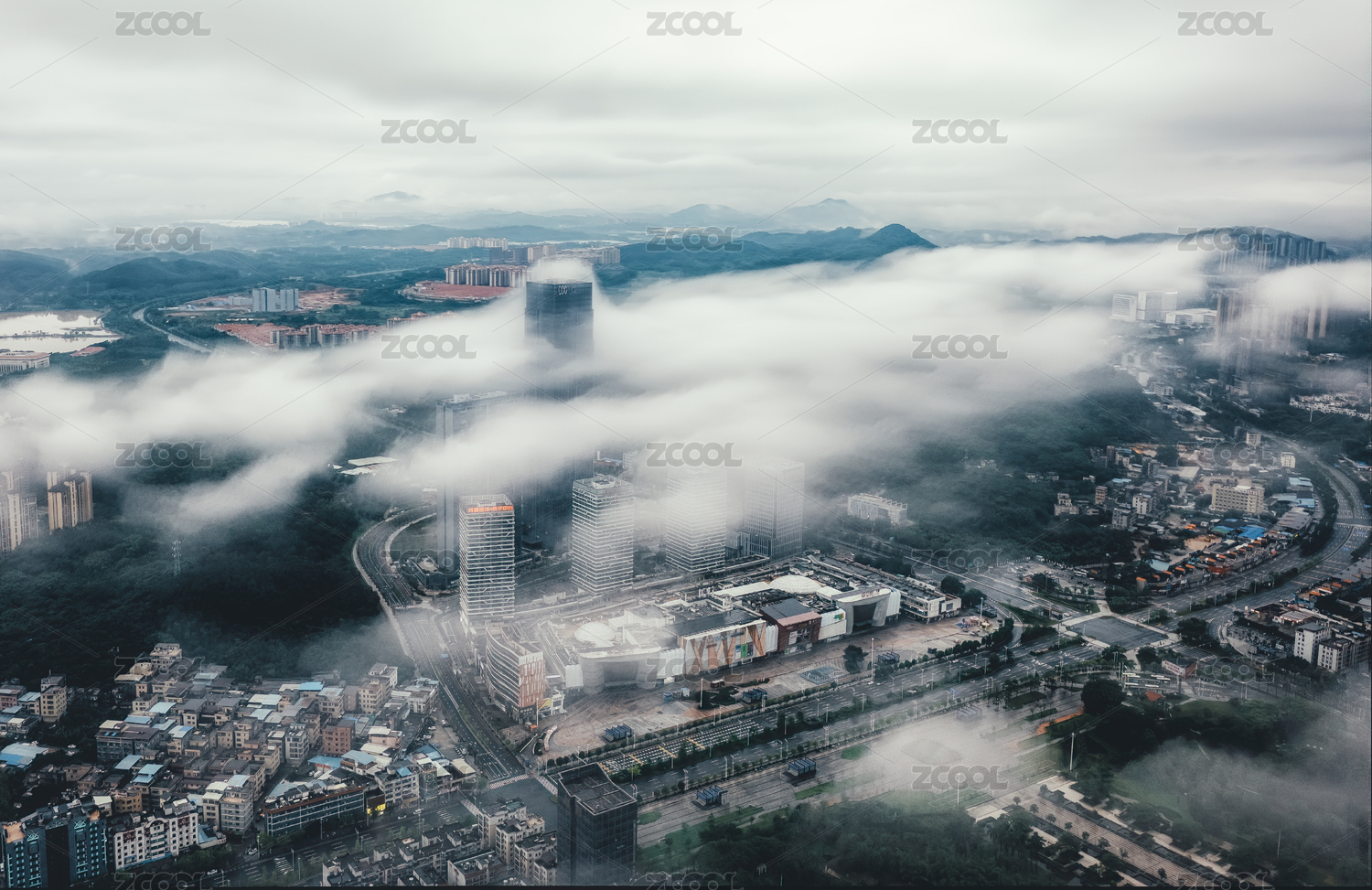 重慶霧中都市高樓遠(yuǎn)景