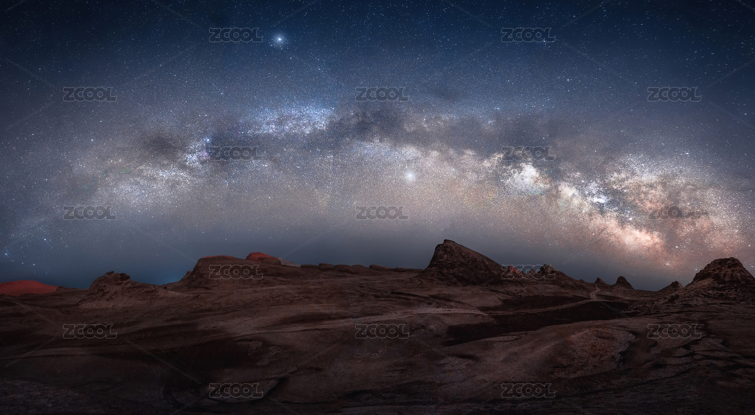 中國青海南八仙雅丹魔鬼城的銀河星空