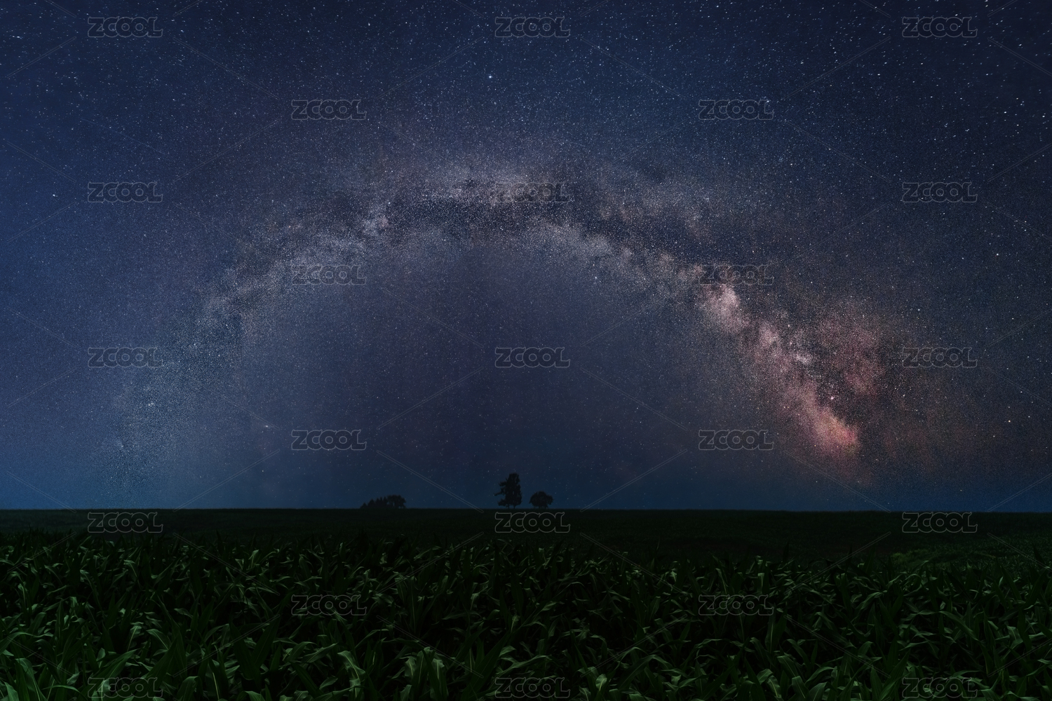 夏天夜晚中國吉林銀河銀拱之下玉米地
