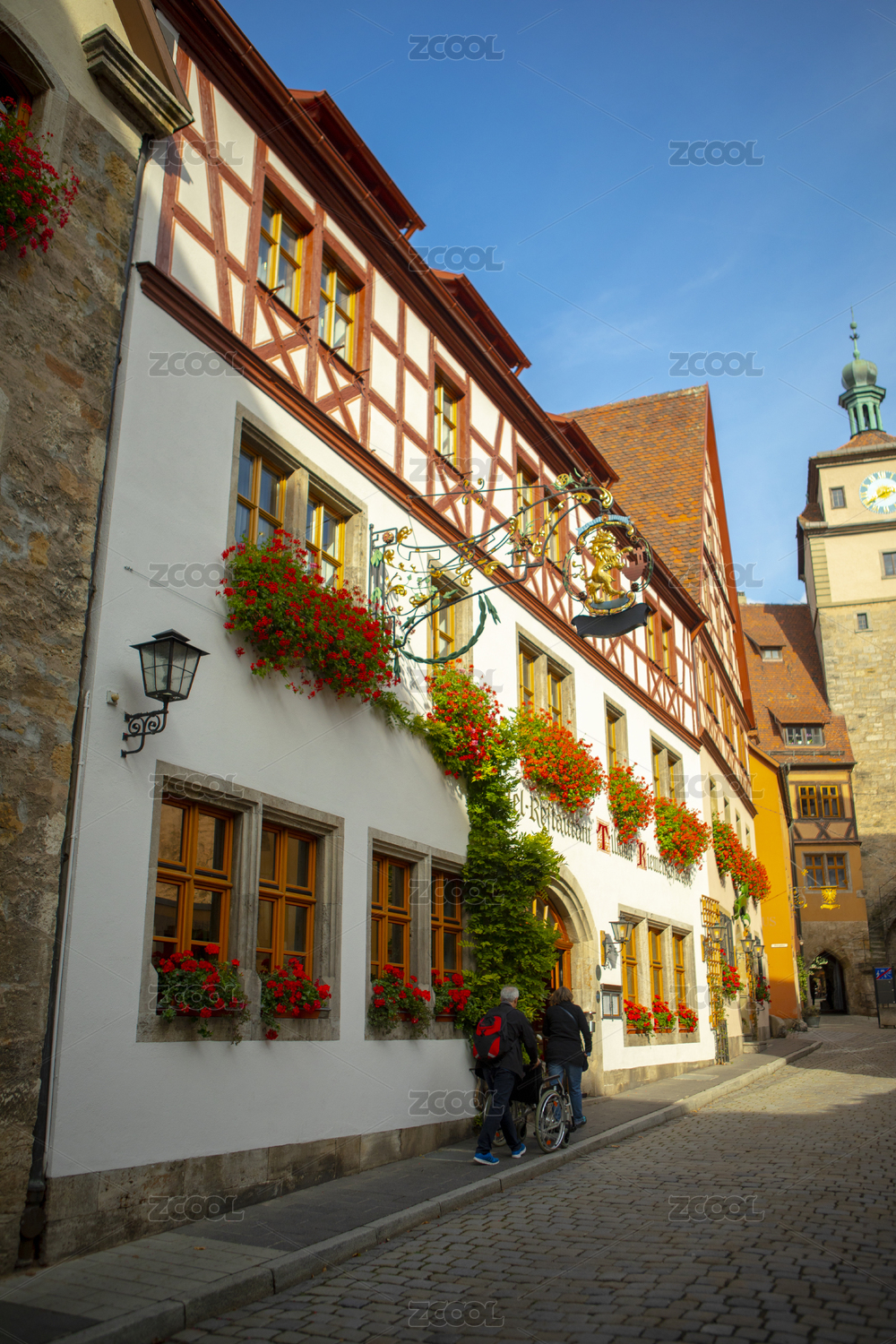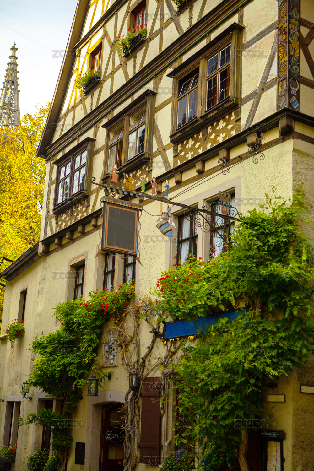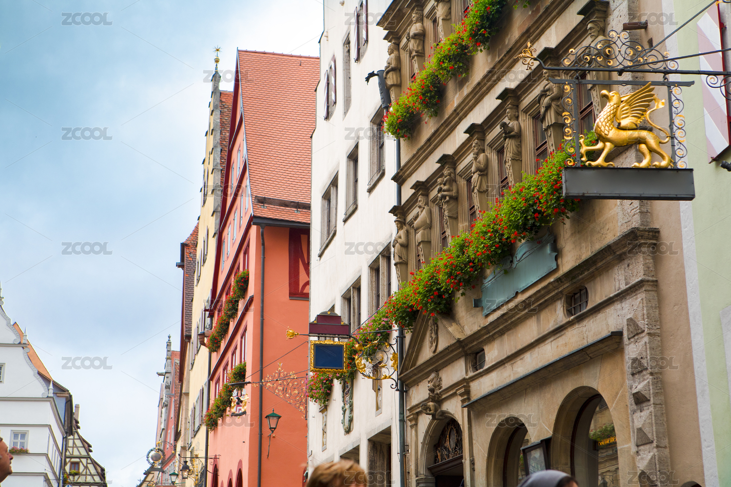 德國(guó)羅騰堡童話鎮(zhèn)古老的街道上商家獨(dú)特的綠