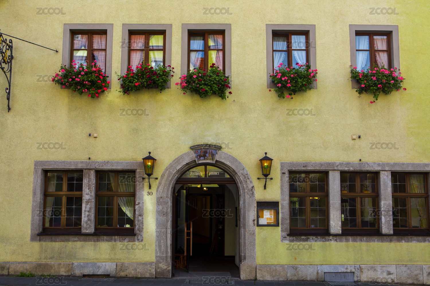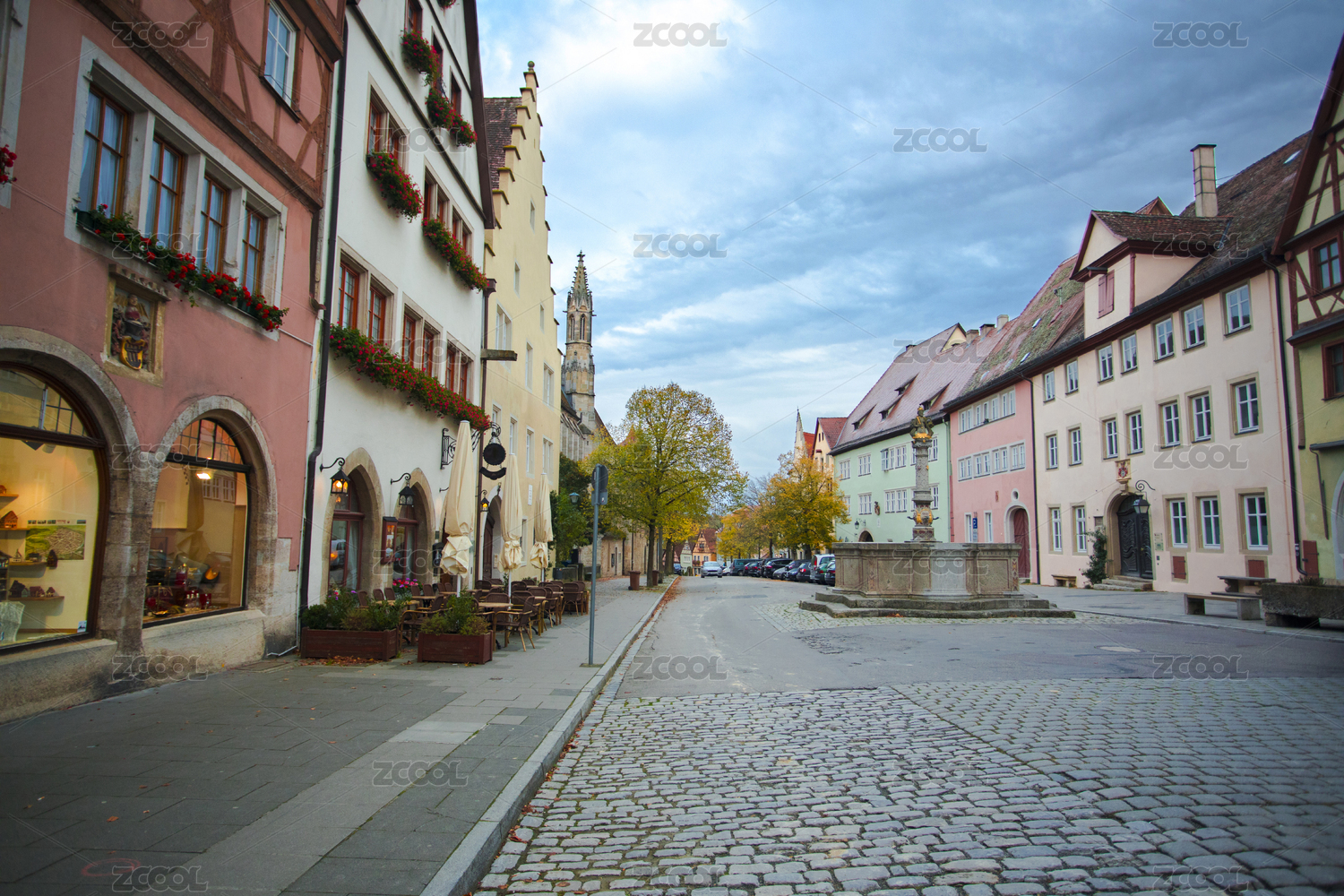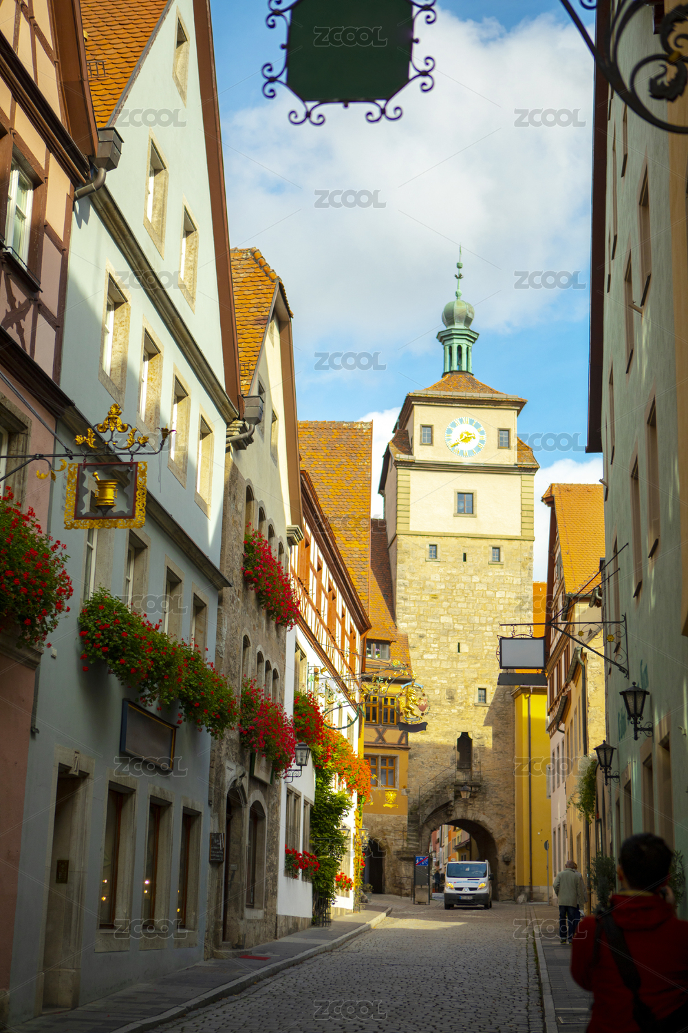 德國(guó)羅騰堡童話鎮(zhèn)古老的街道上商家獨(dú)特的綠