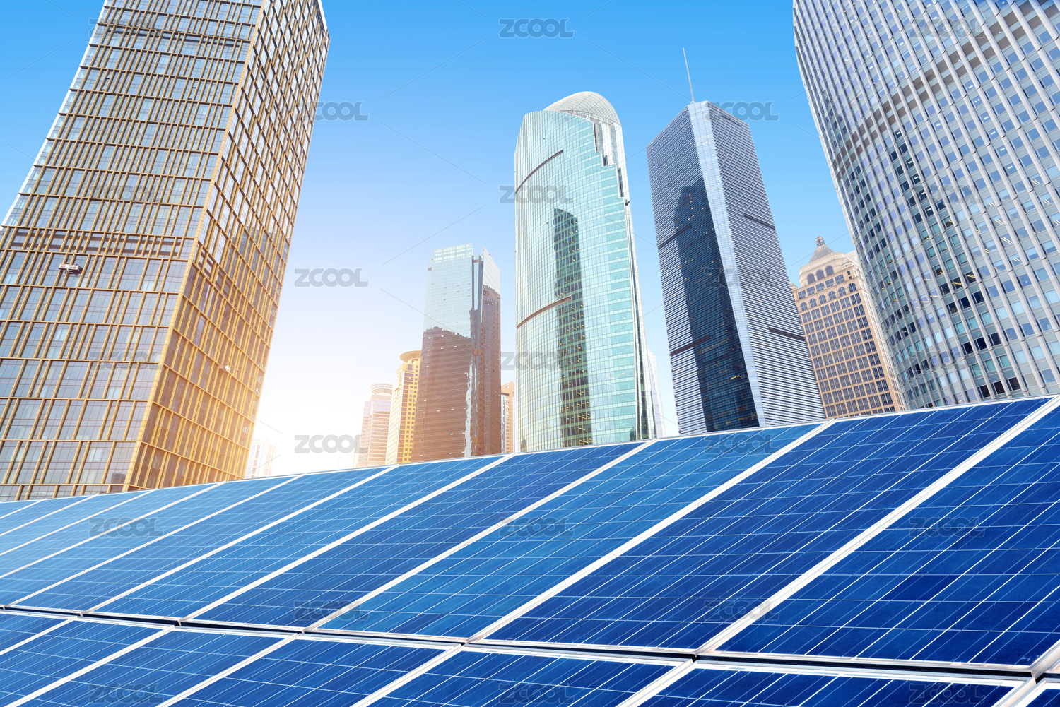 光伏面板和上海城市景觀