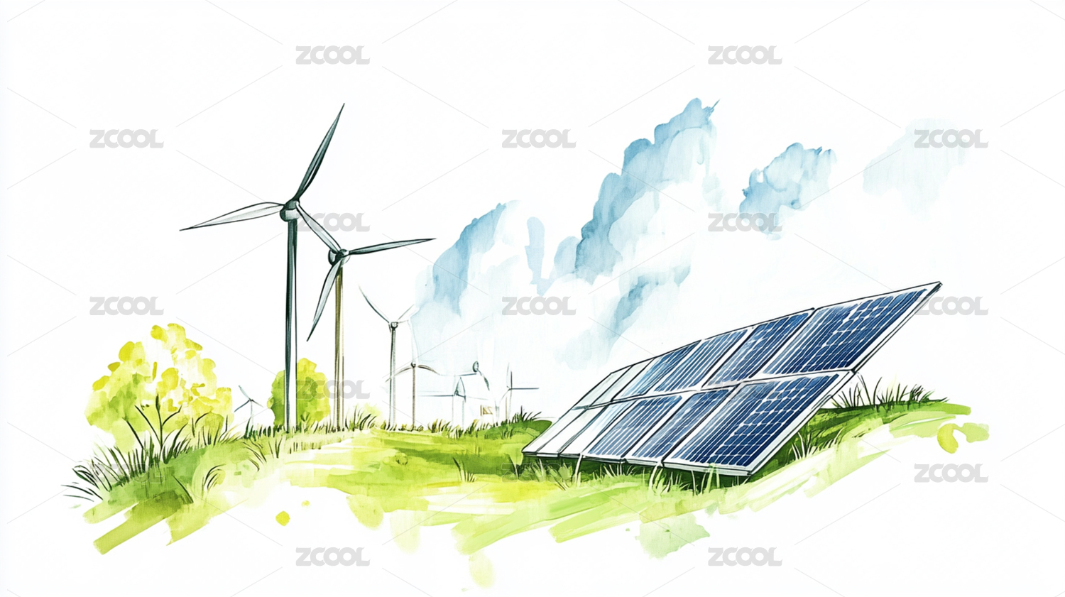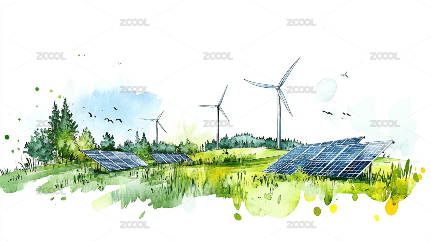 光伏風(fēng)能新能源鄉(xiāng)村風(fēng)景插畫
