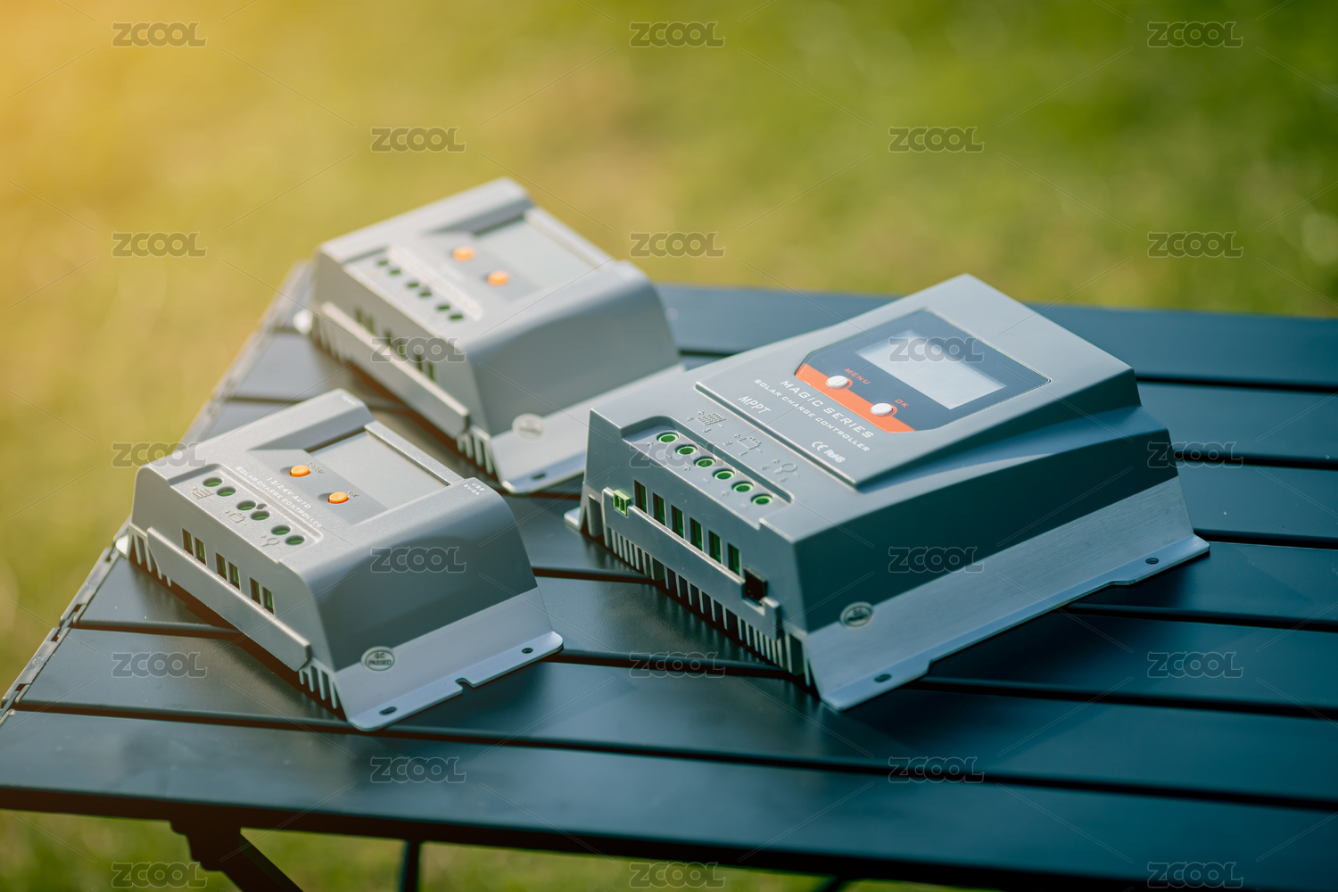 光照下桌子上的光伏太陽能控制器