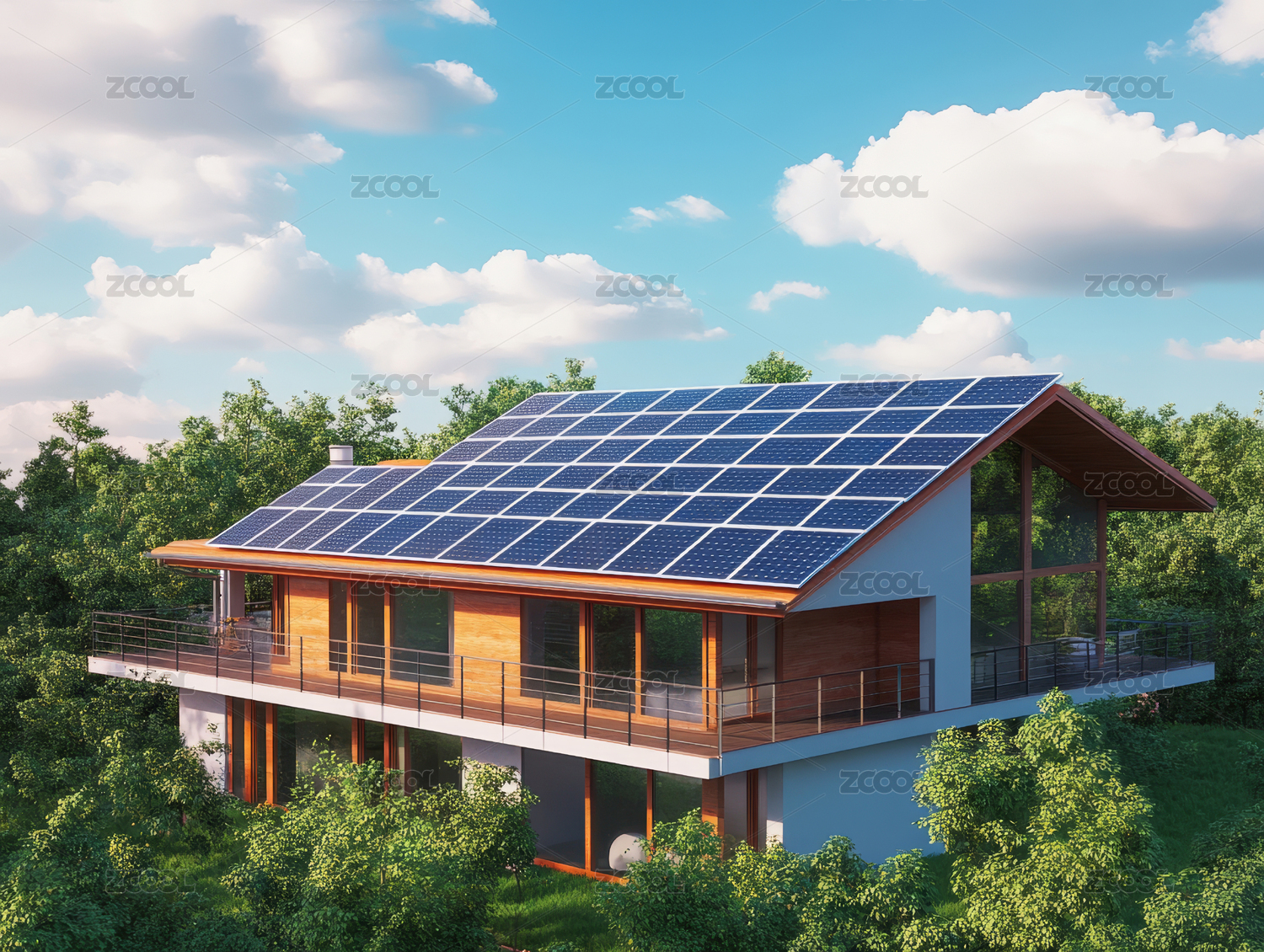 航拍現(xiàn)代別墅與太陽能光伏板