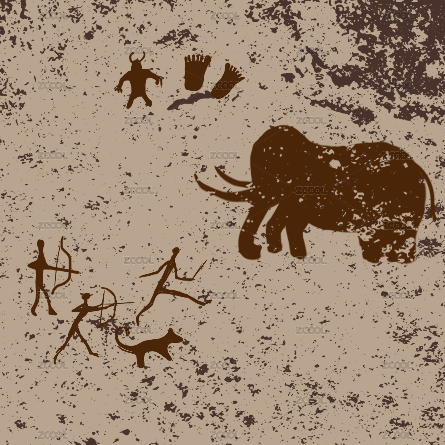 遠(yuǎn)古原始人狩獵壁畫
