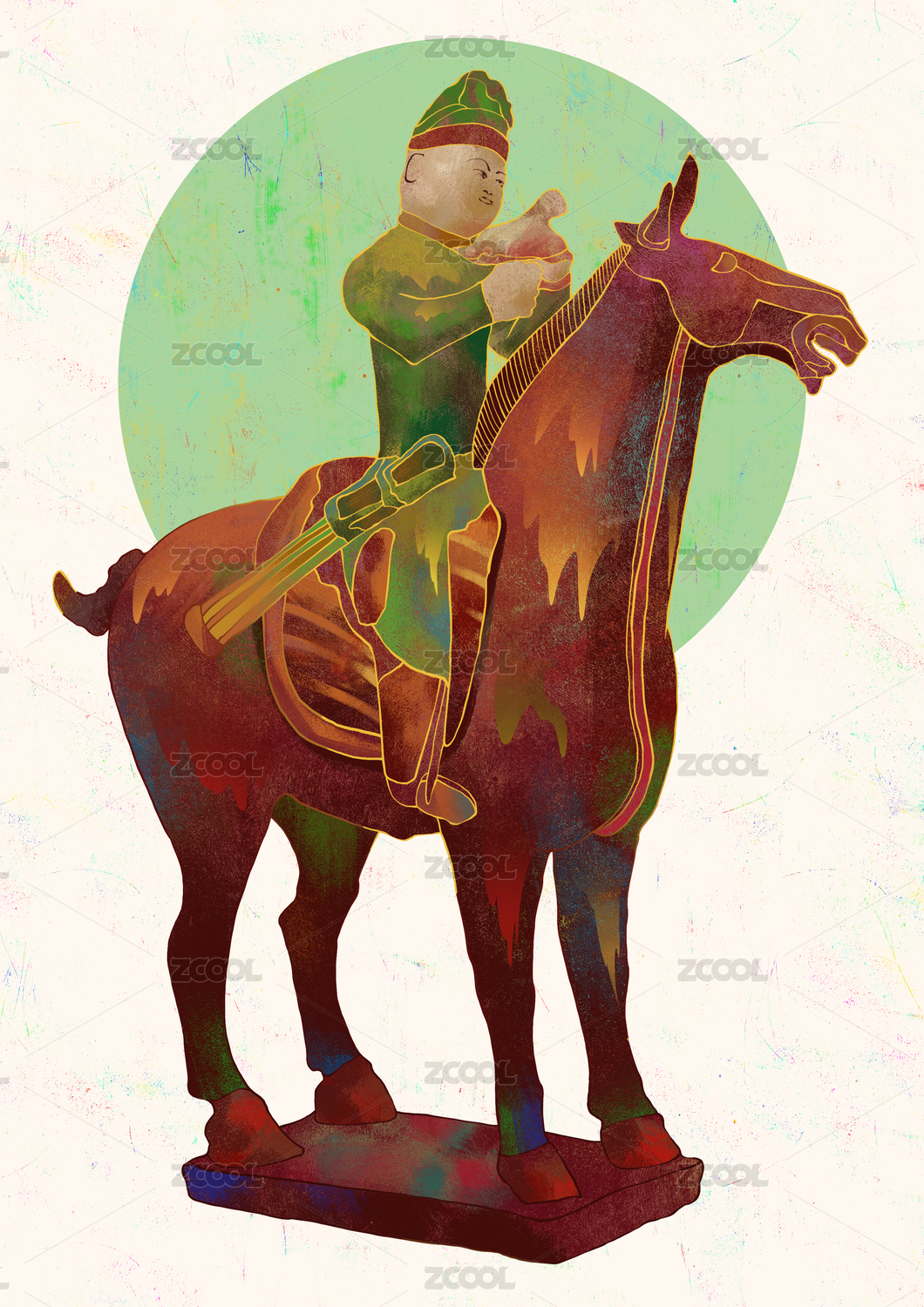 狩獵騎馬陶俑國(guó)潮插畫