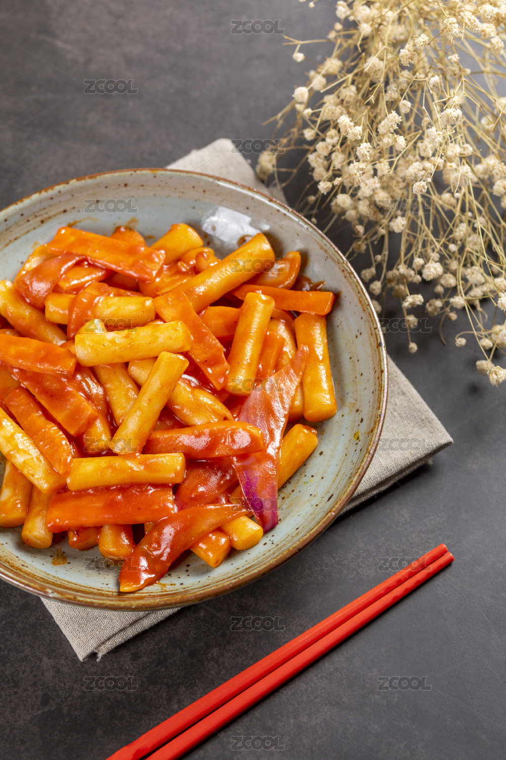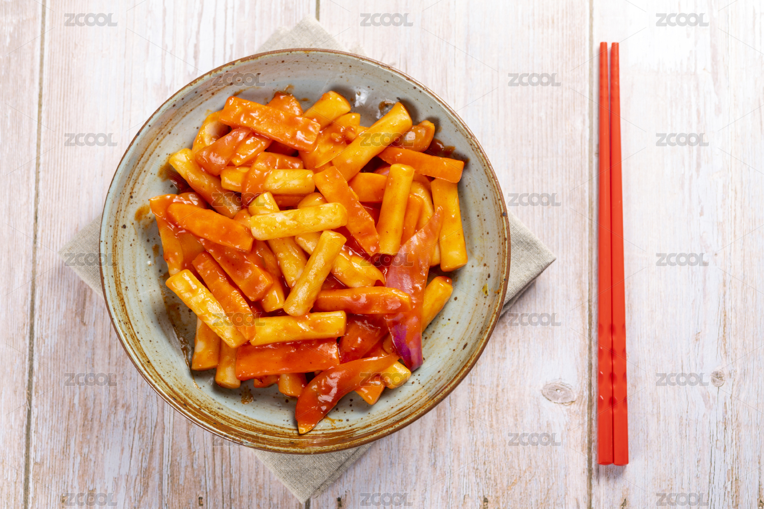 白背景一盤韓式傳統(tǒng)美食炒年糕