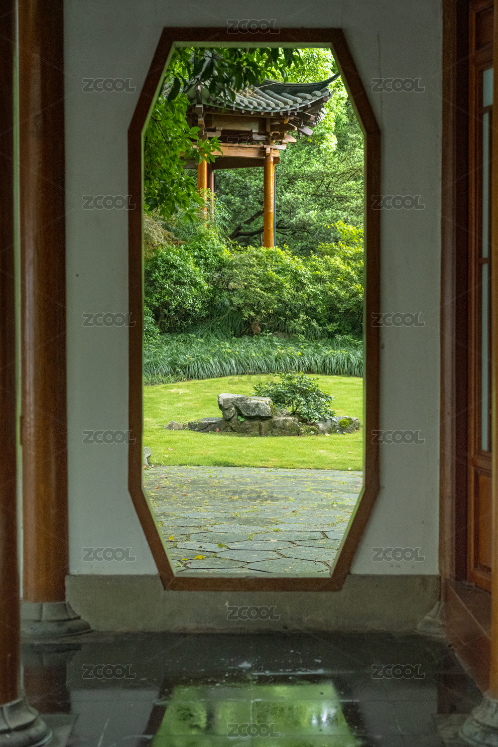 重慶中式園林鵝嶺公園風(fēng)景——窗子框景