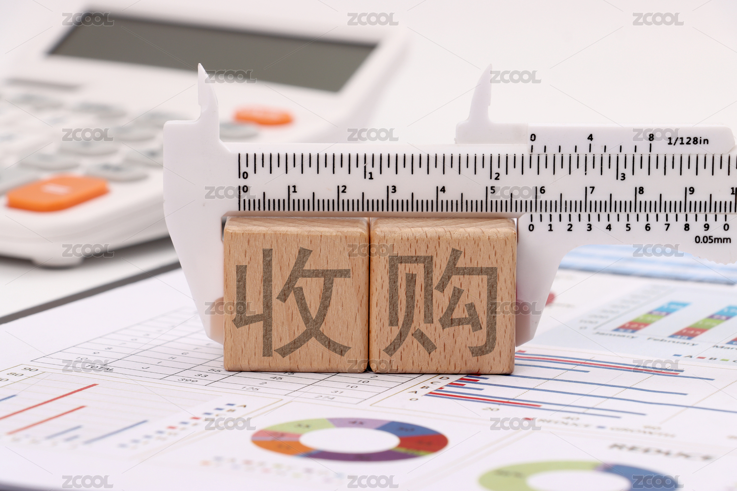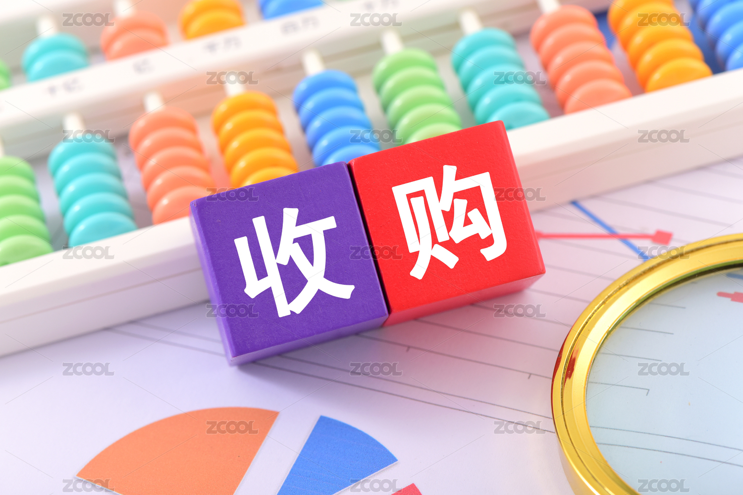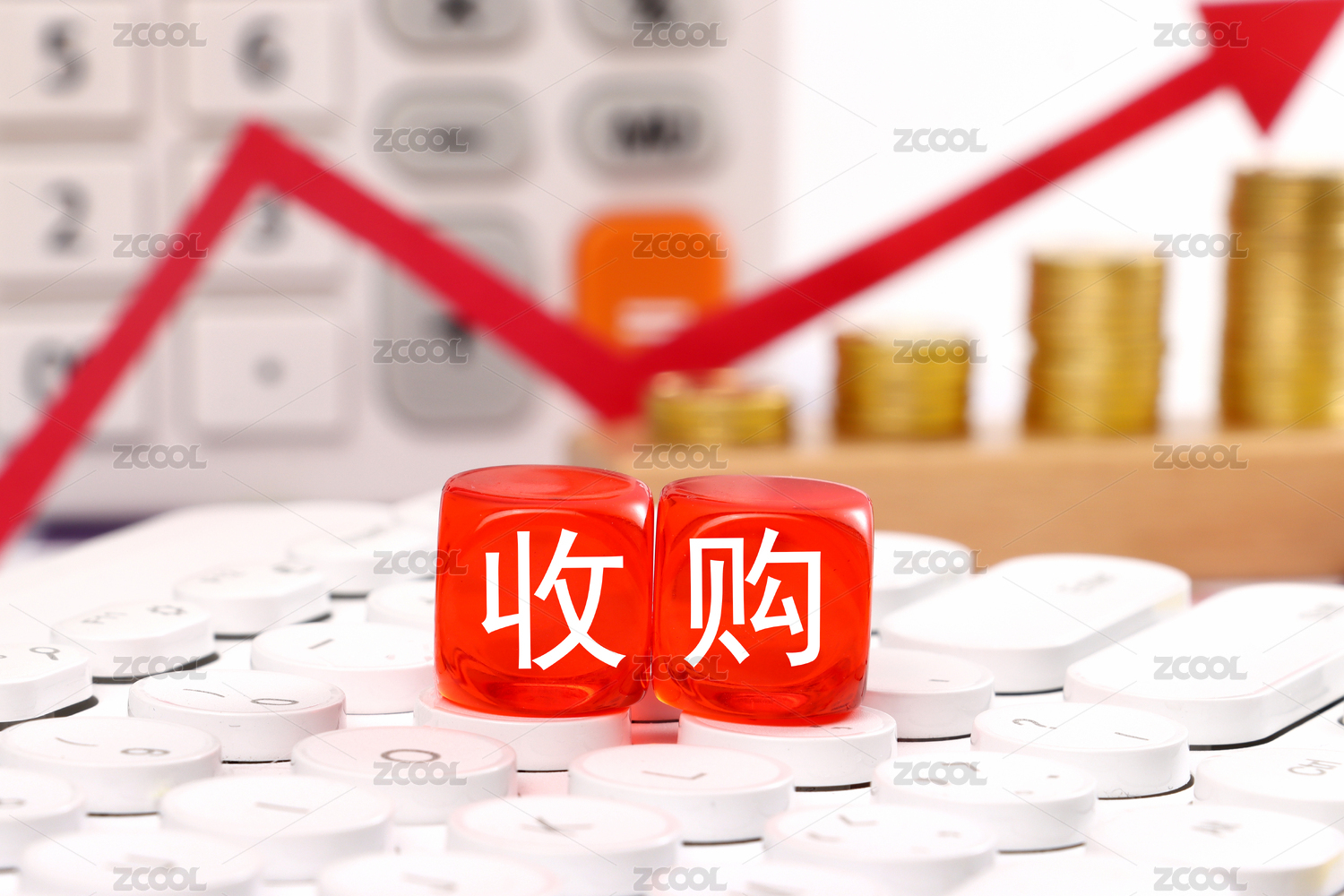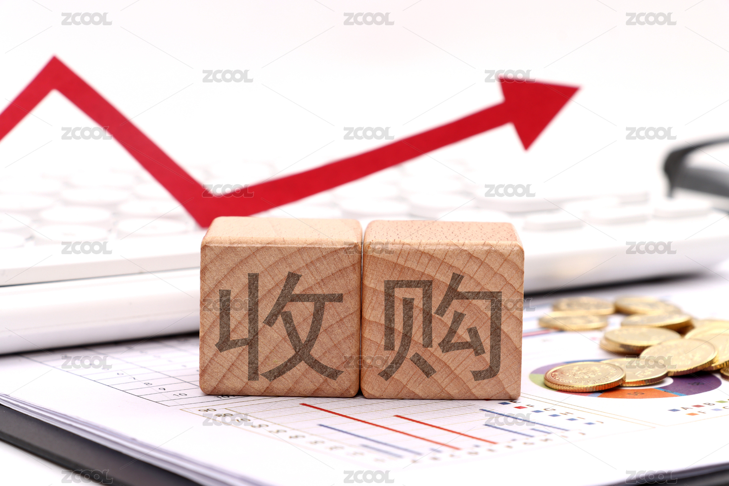 金融辦公用品上放著文字積木收購
