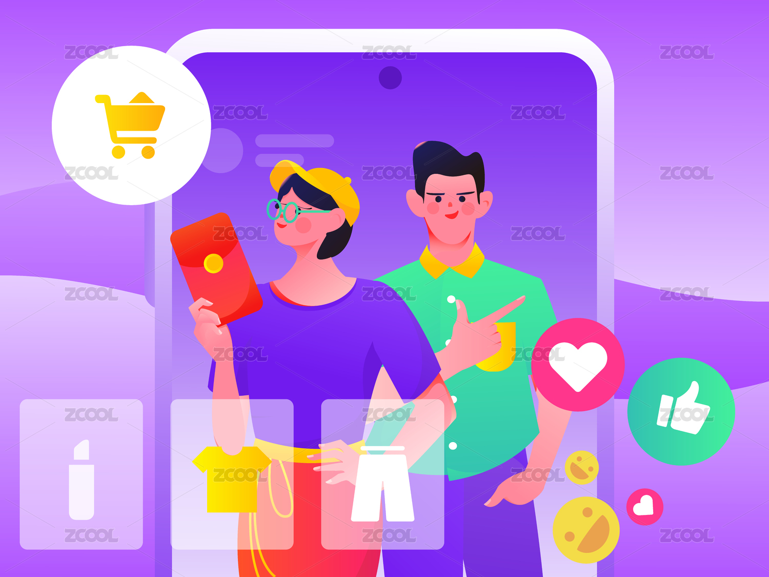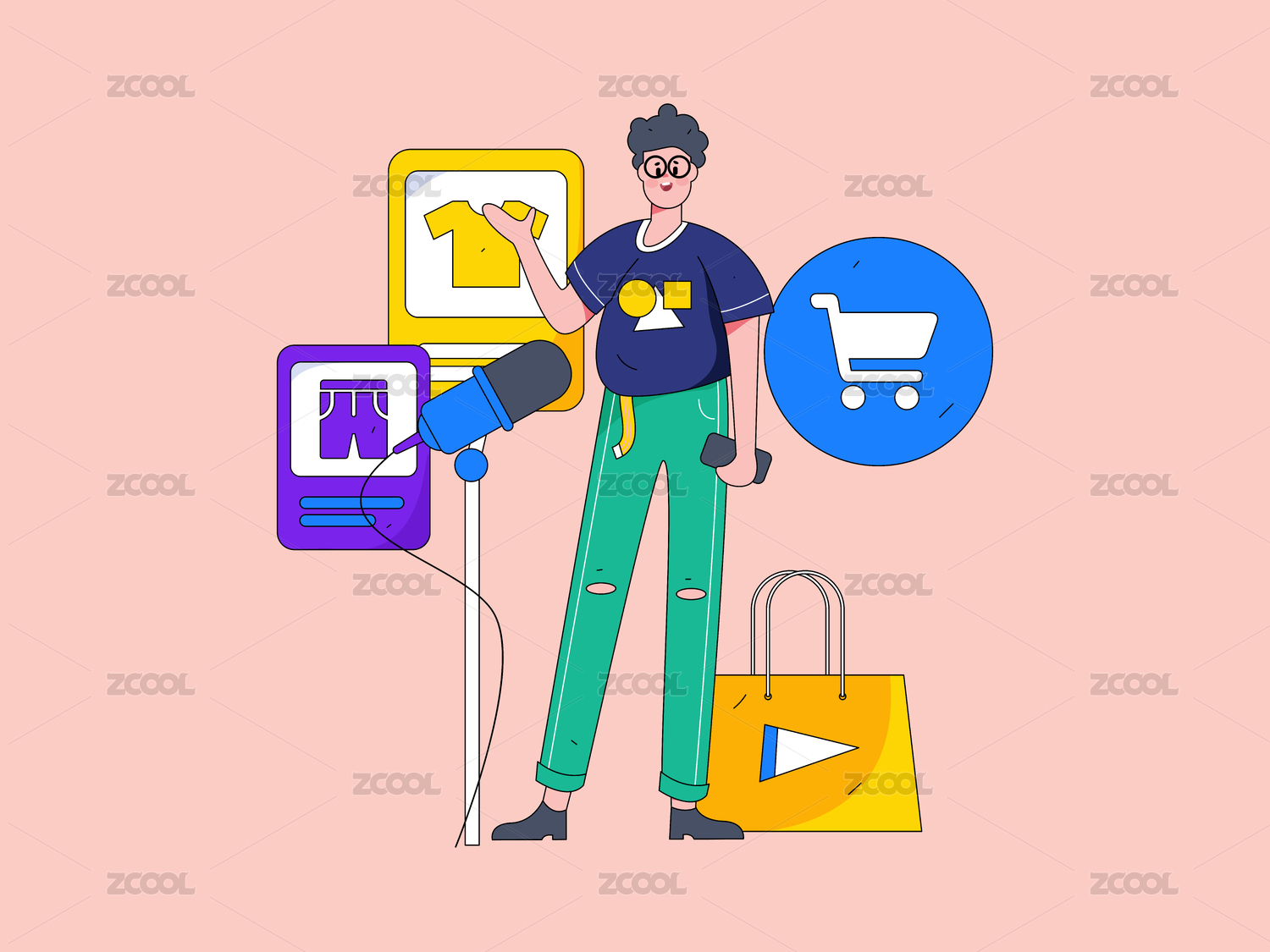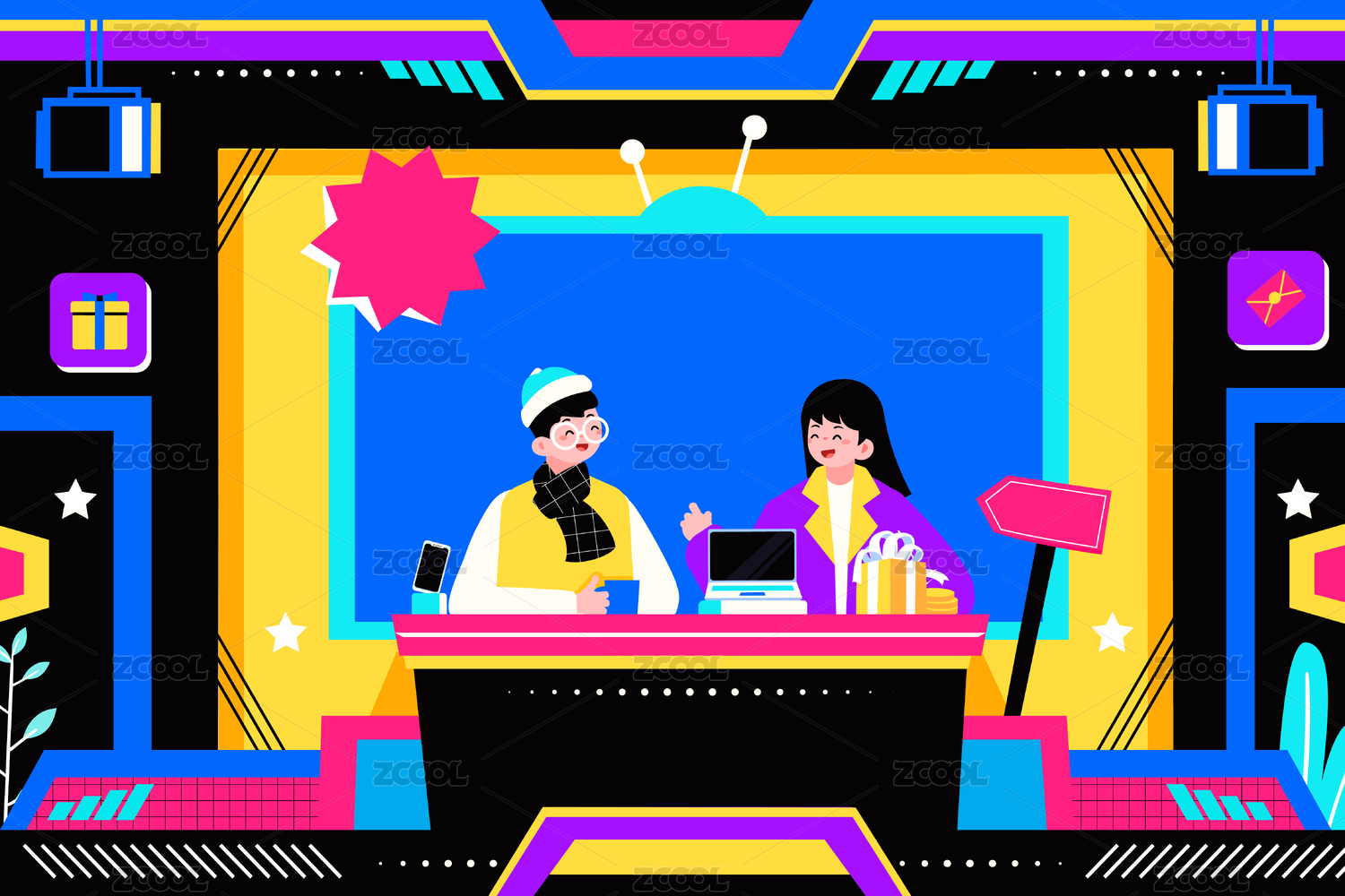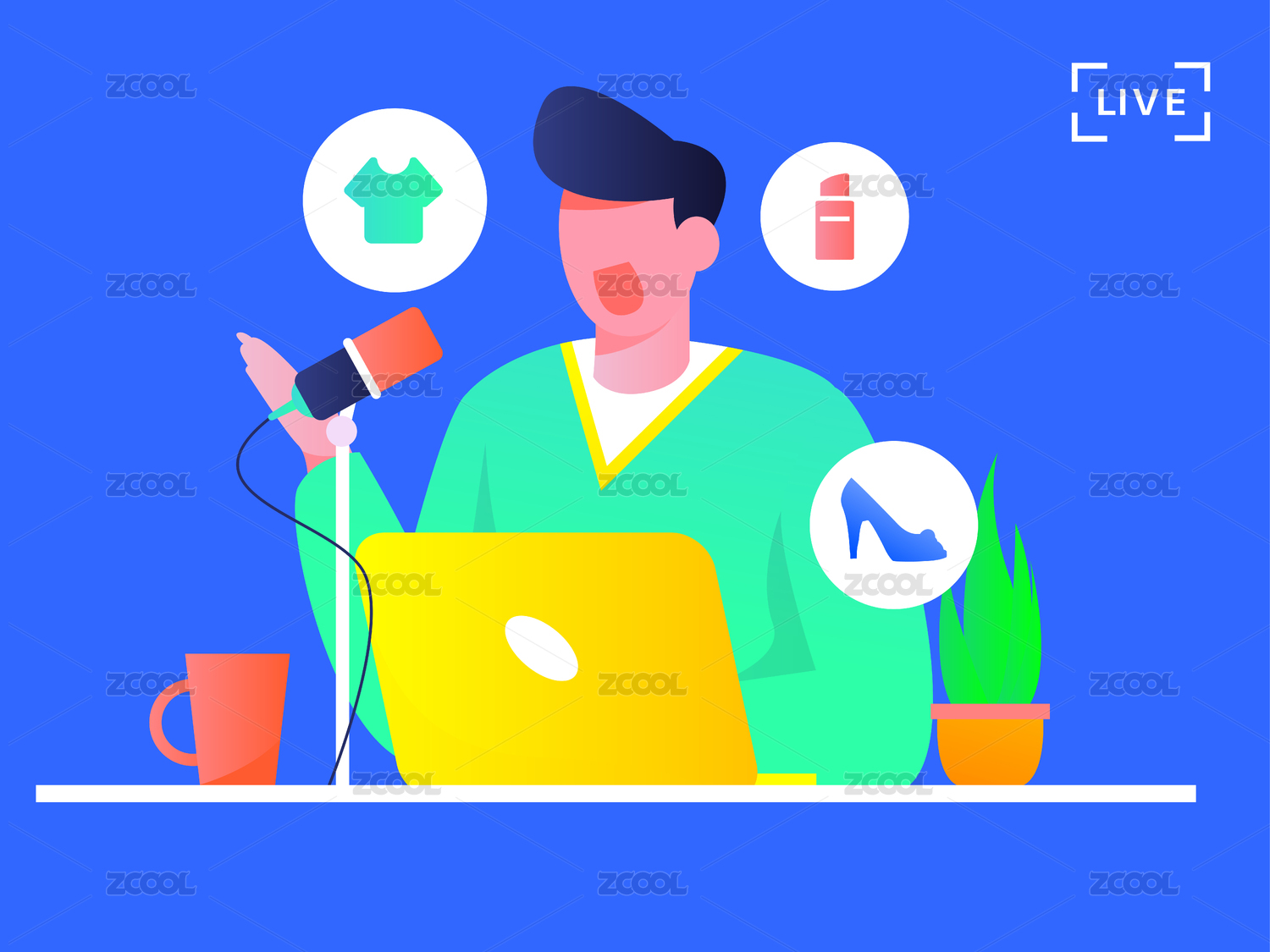 網(wǎng)紅直播帶貨矢量互聯(lián)網(wǎng)手繪插畫