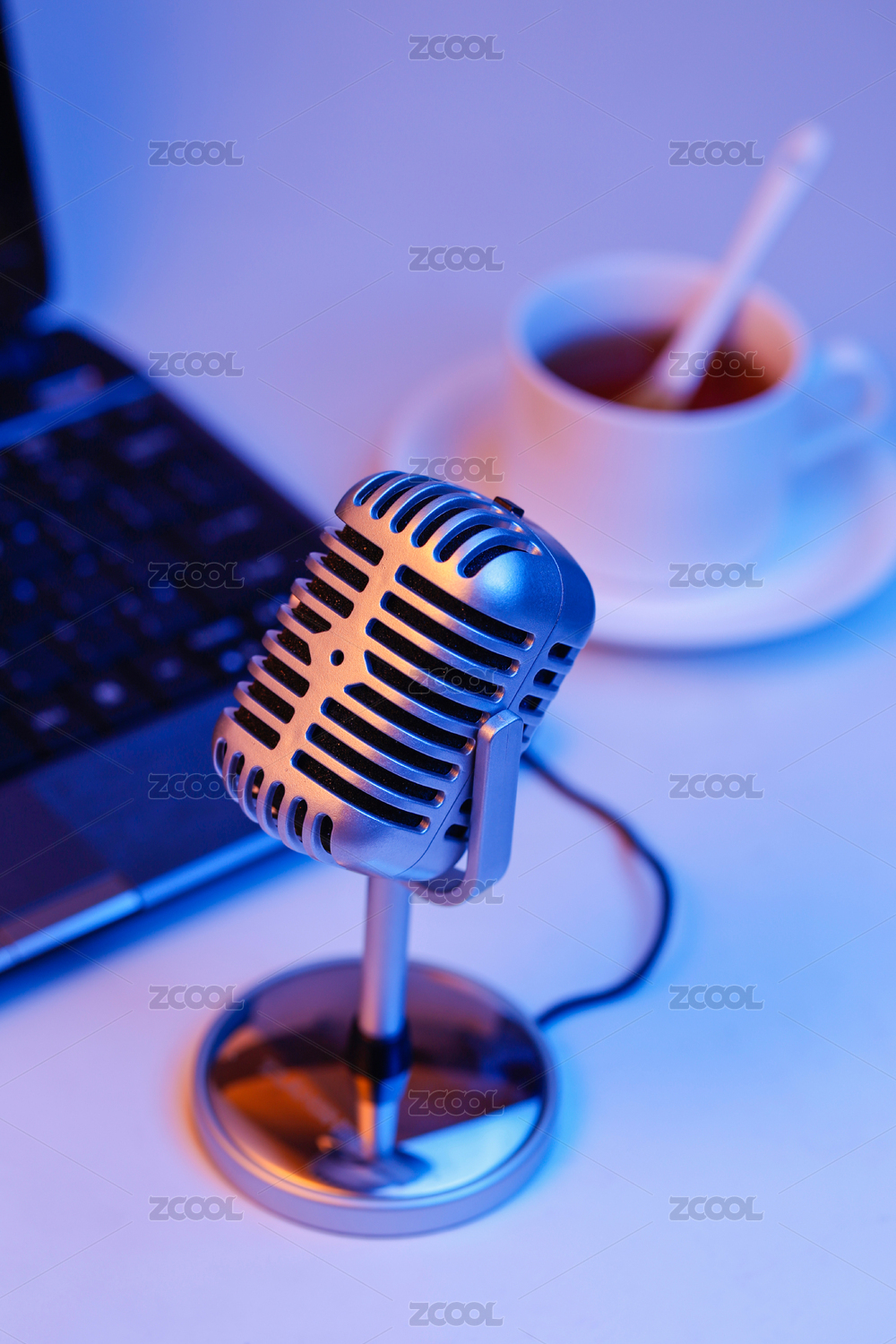 復(fù)古麥克風(fēng)和筆記本電腦,網(wǎng)上直播,在線直播概念