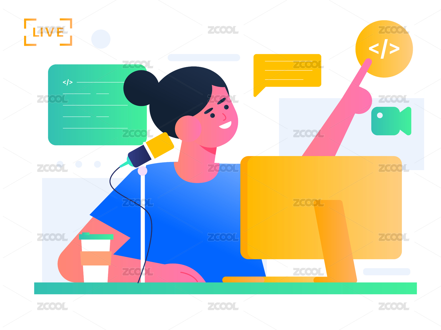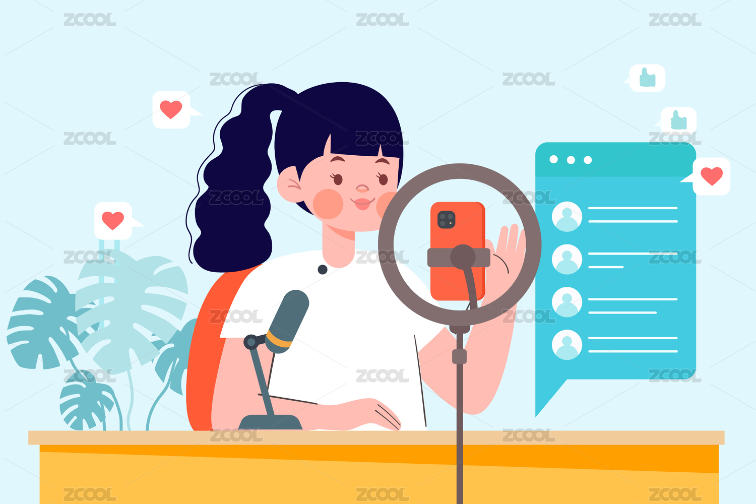 女主播正在網(wǎng)絡(luò)直播矢量插畫