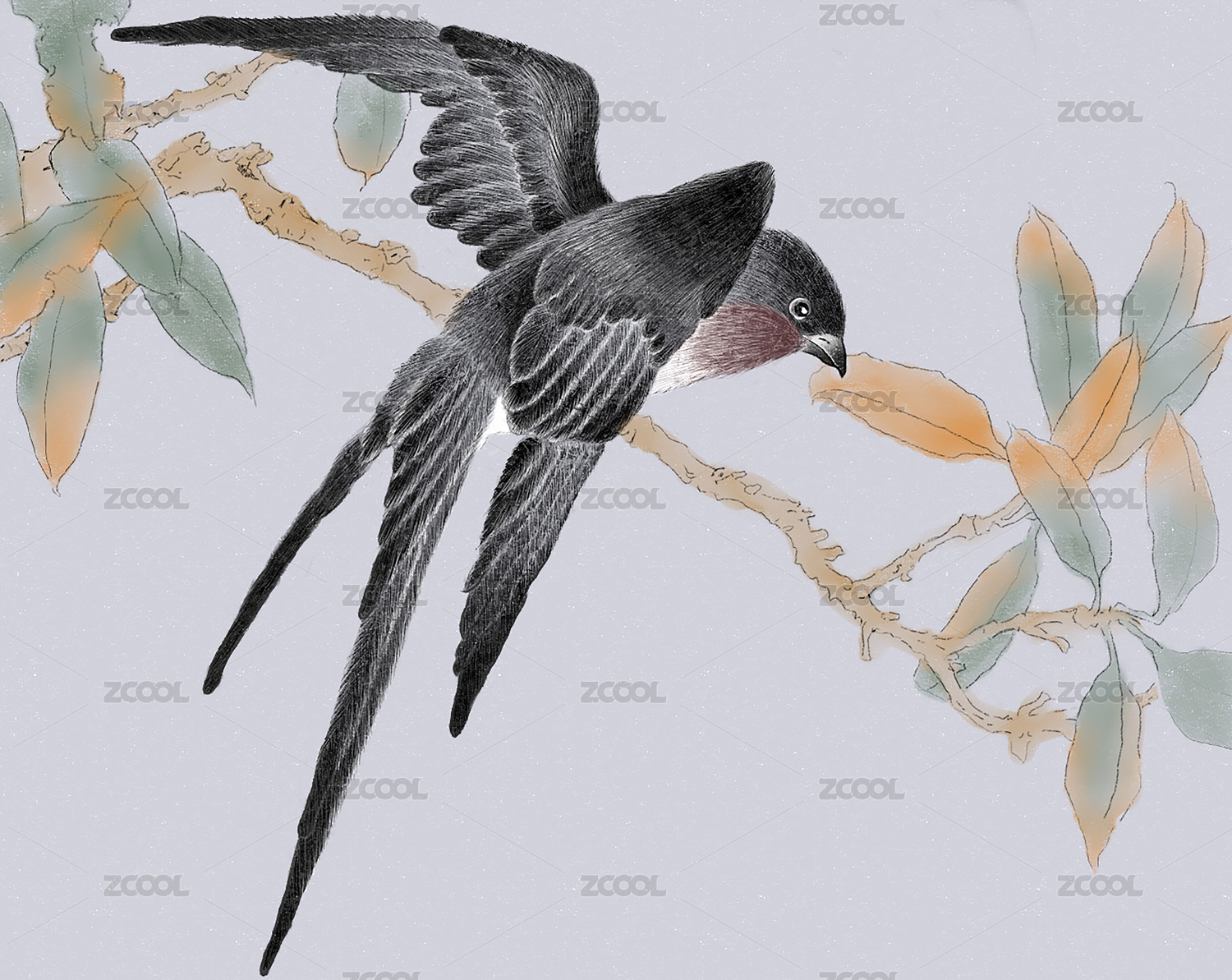 中式壁畫 電視背景墻中式花鳥水墨新款壁畫工筆花鳥畫