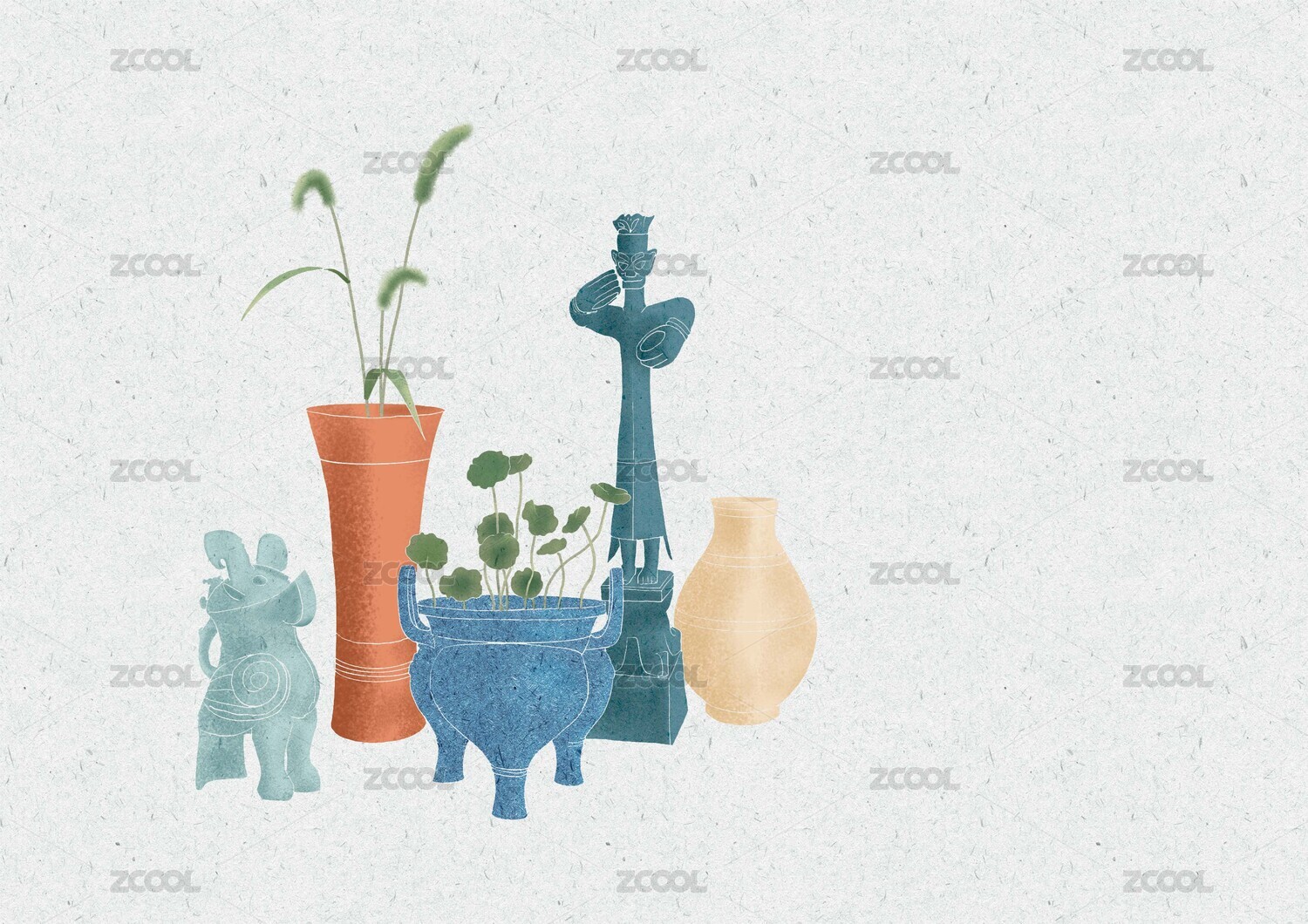 中國風(fēng)淡雅新中式花開富貴花鳥山水畫