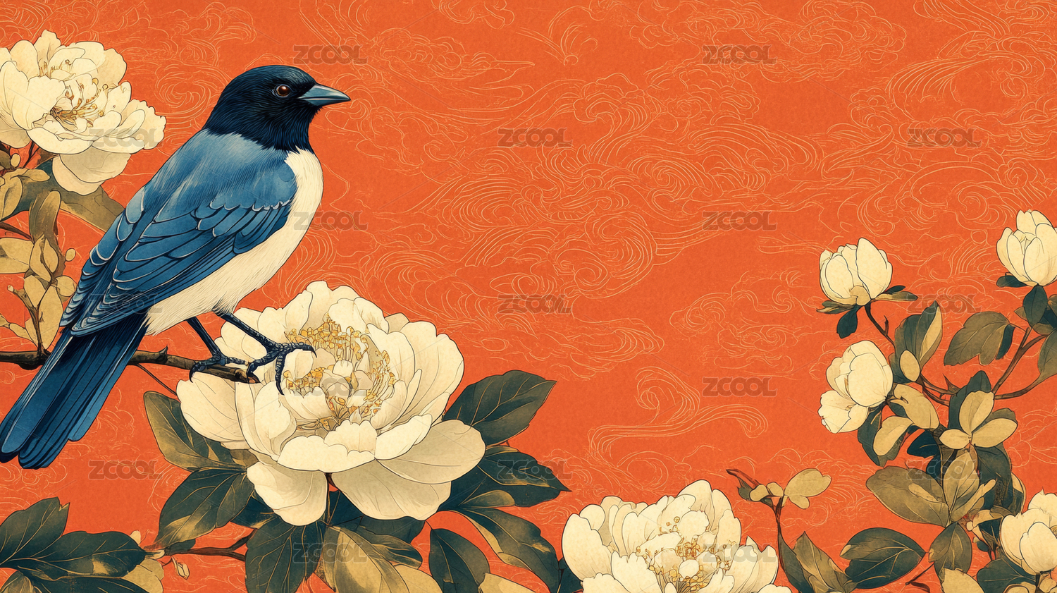 喜鵲與牡丹的國風(fēng)工筆花鳥畫