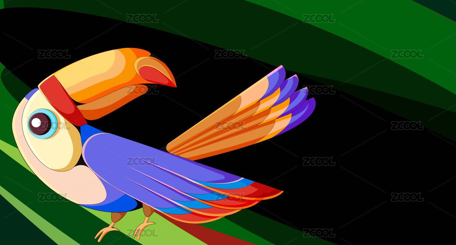 抽象森林樹洞前的鸚鵡矢量插畫海報(bào)設(shè)計(jì)模板