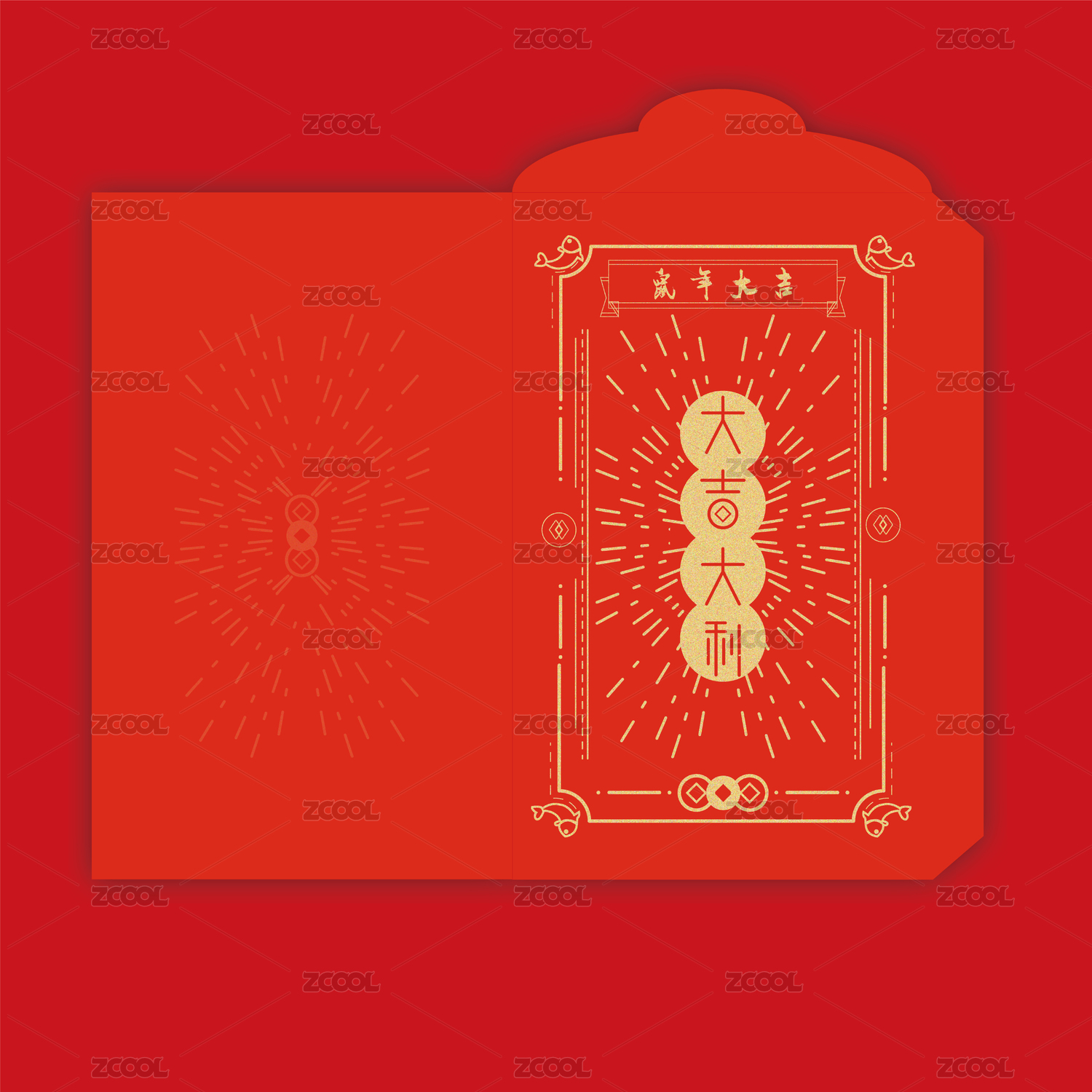 大吉大利書法字體紅包矢量設(shè)計(jì)模板