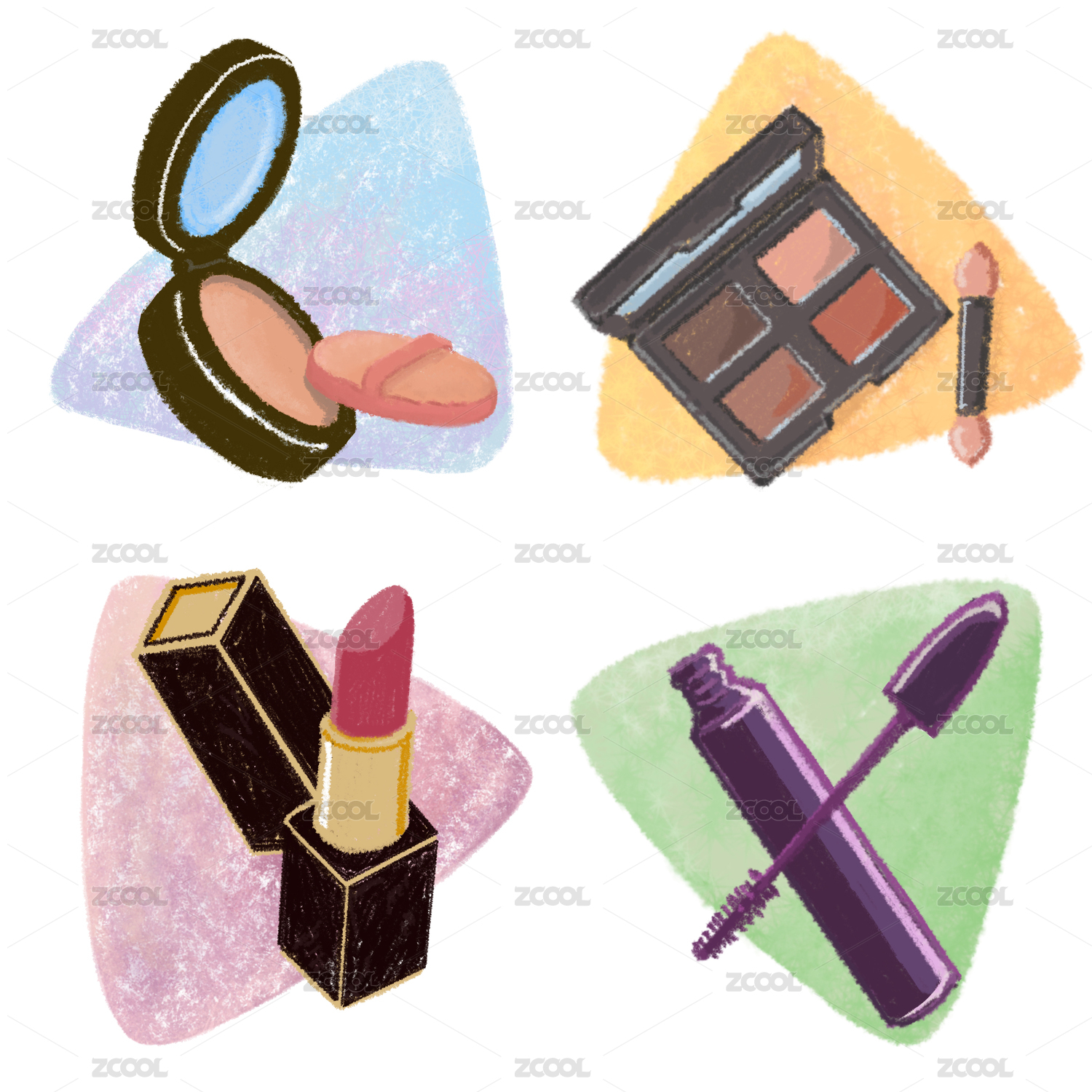 美妝插畫化妝品粉餅口紅眼影睫毛膏插圖