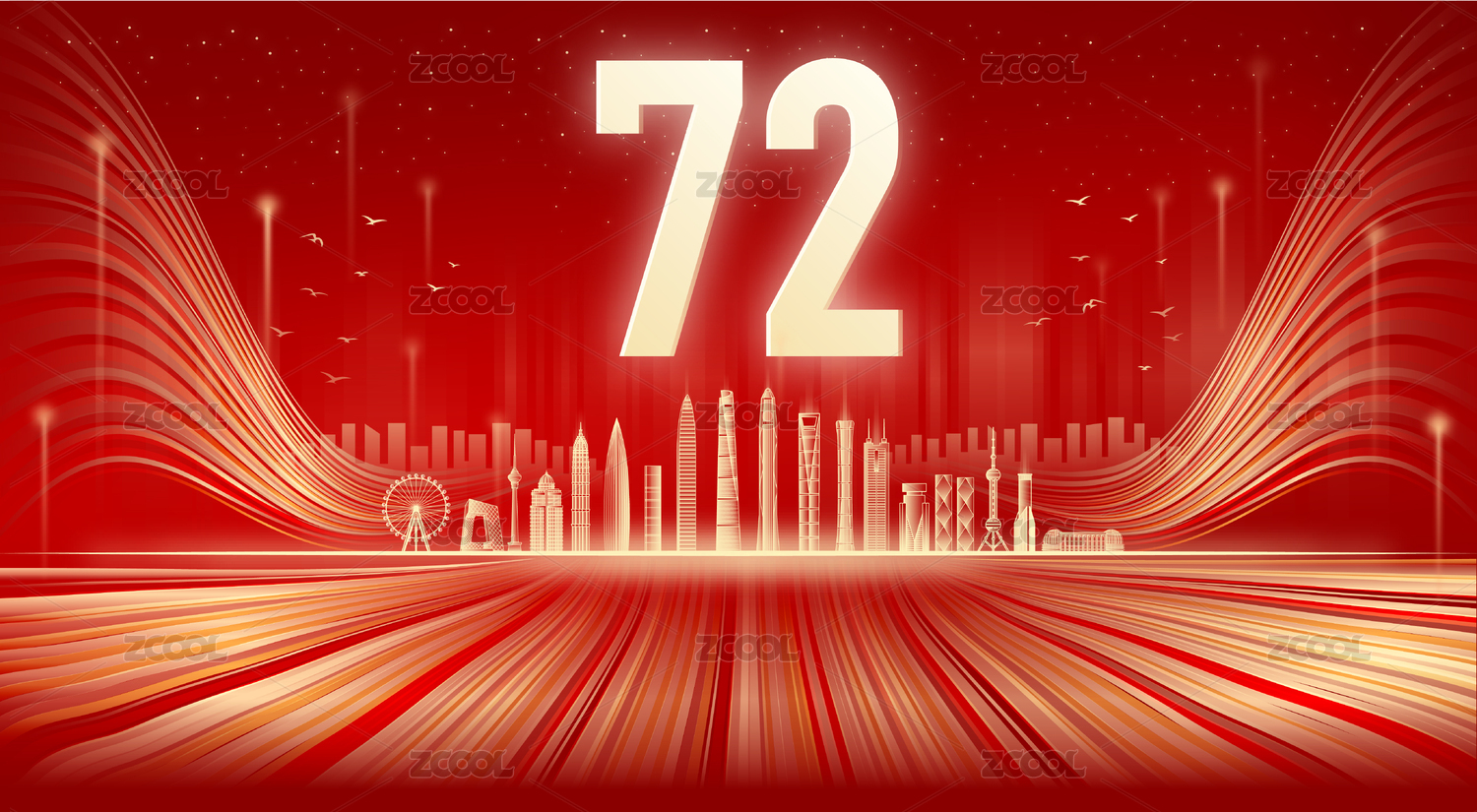 紅色文化國(guó)慶節(jié)72周年城市矢量插畫