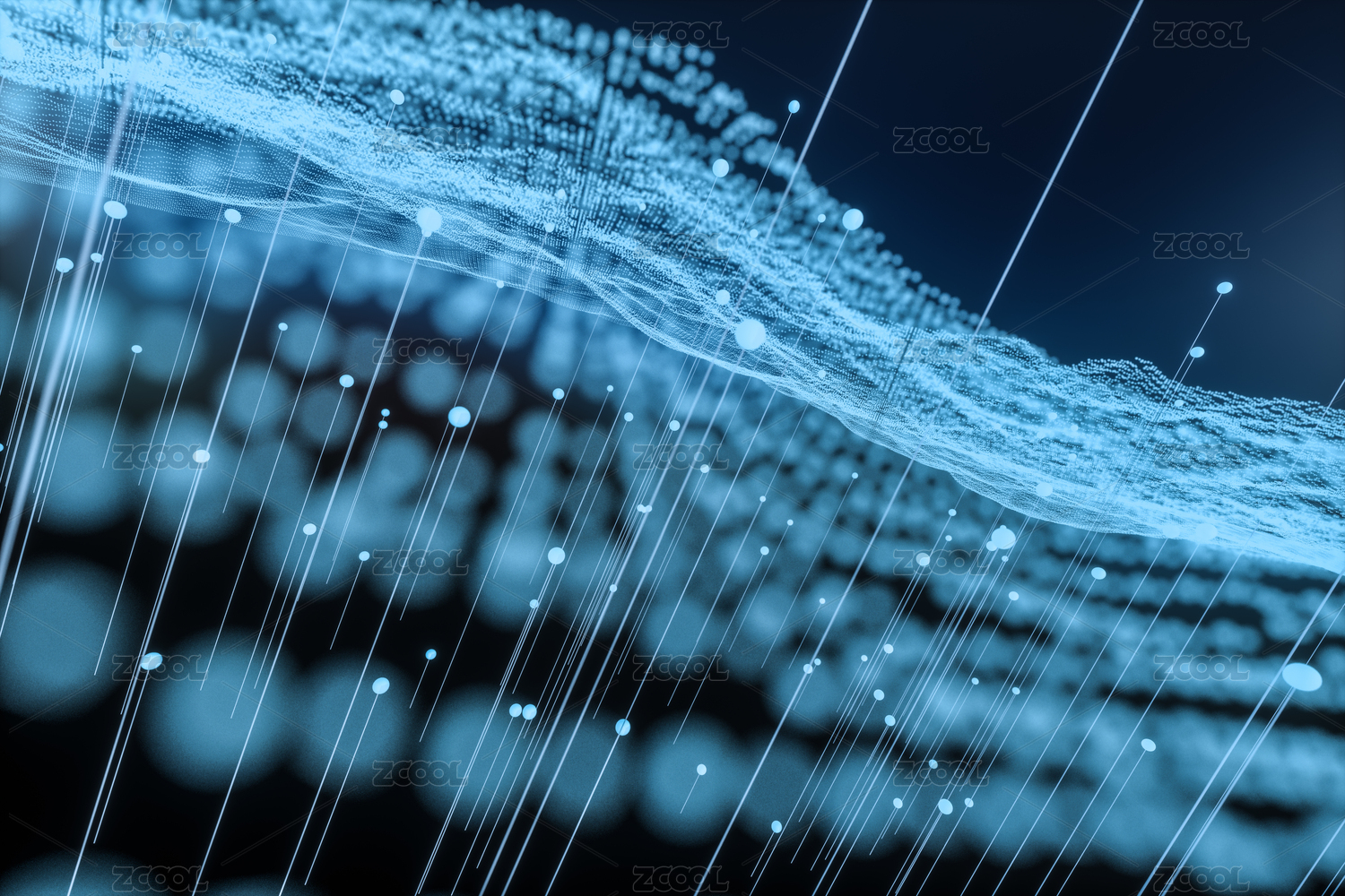 閃爍光點科幻流動點狀波浪3d場景背景