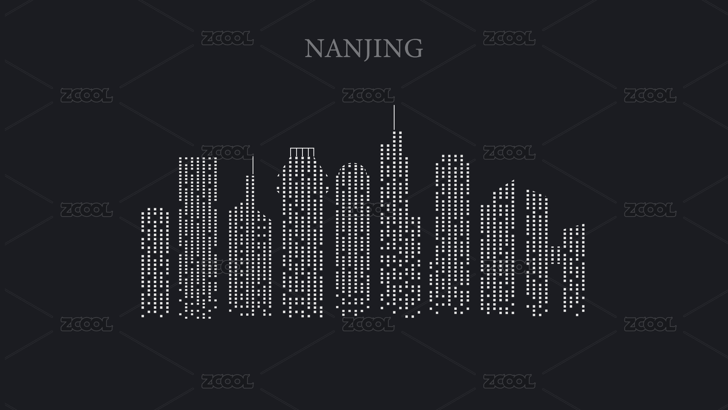 南京城市剪影點狀抽象插畫
