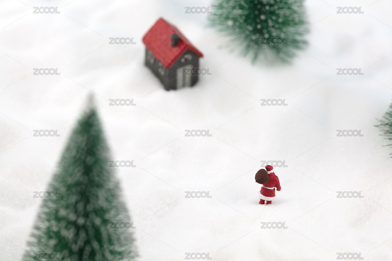 微縮場(chǎng)景圣誕老人朝小房子走去