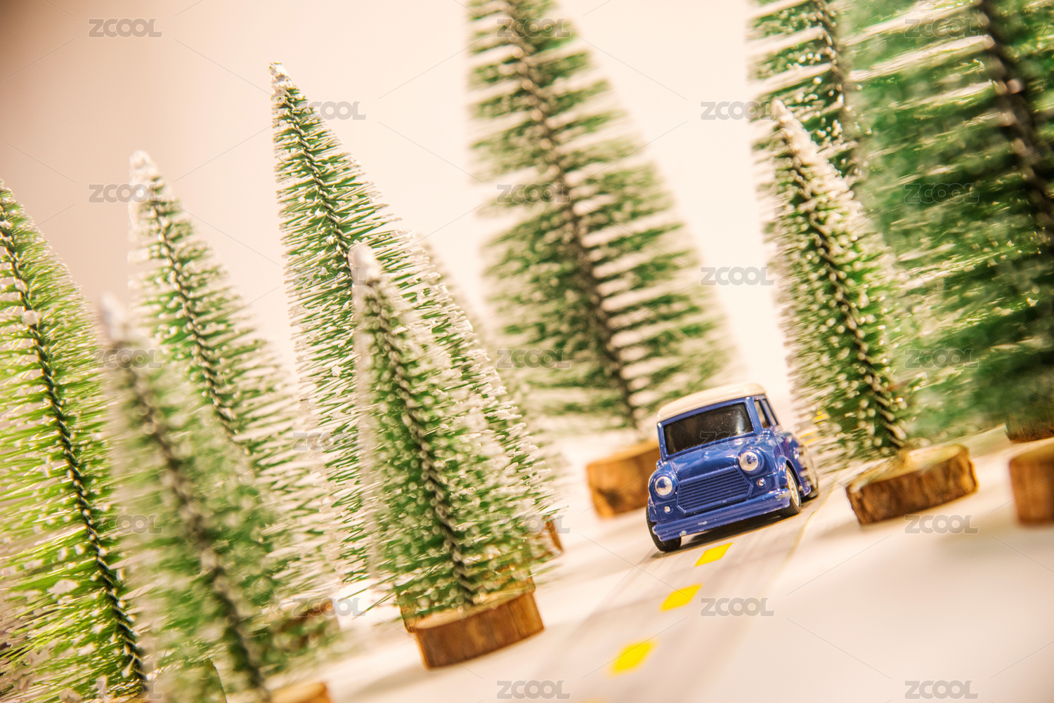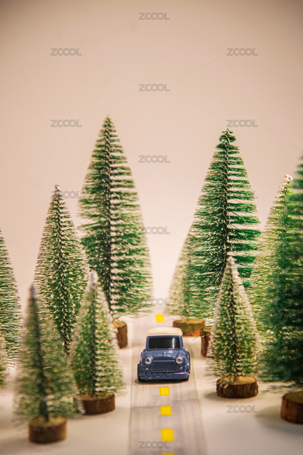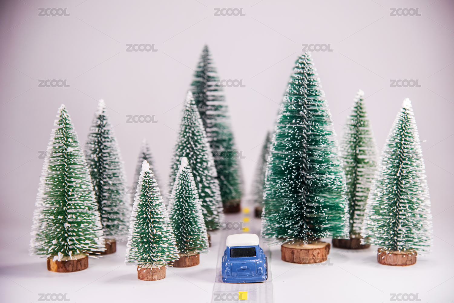 有圣誕雪松和小汽車的微縮場(chǎng)景