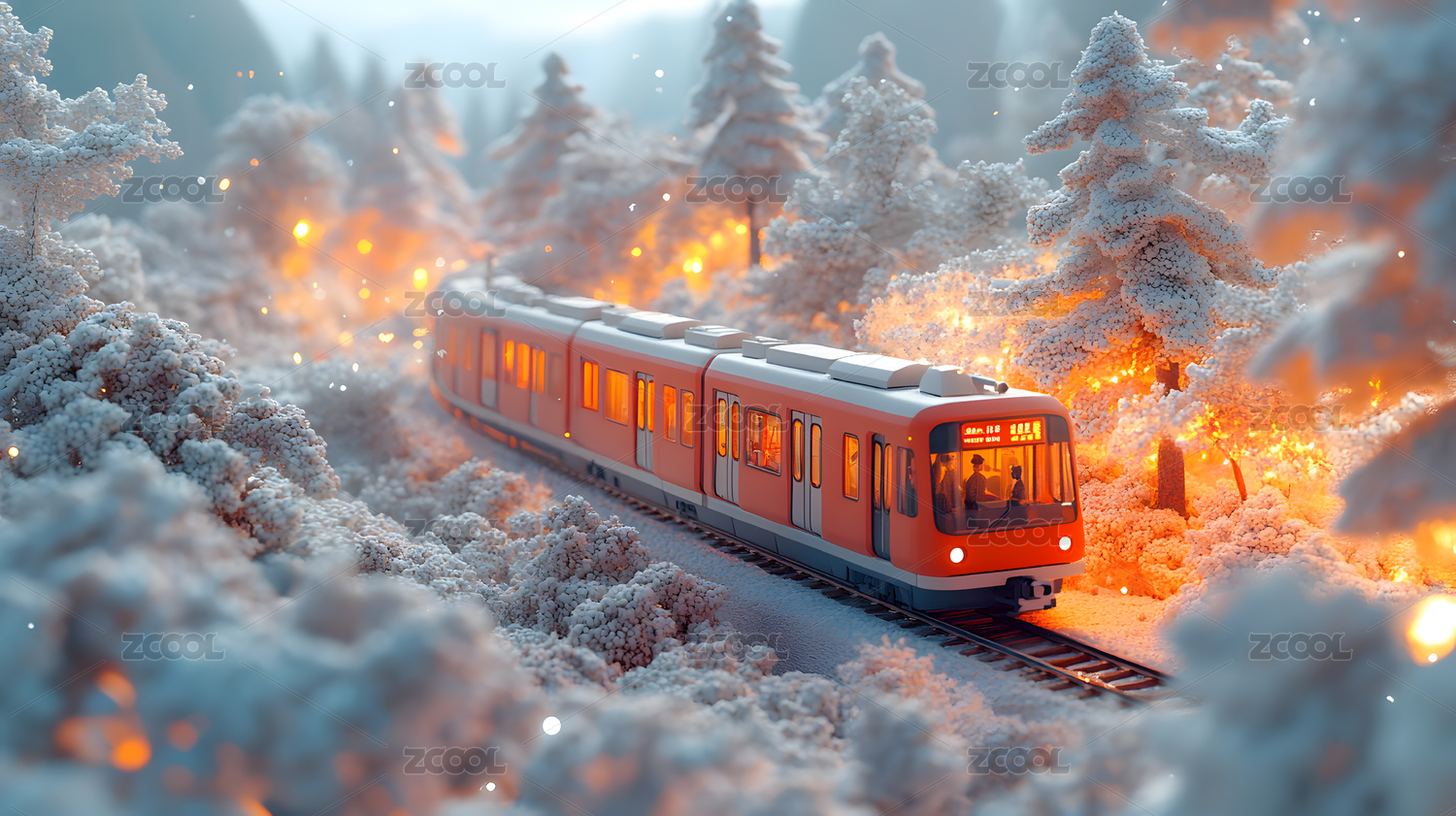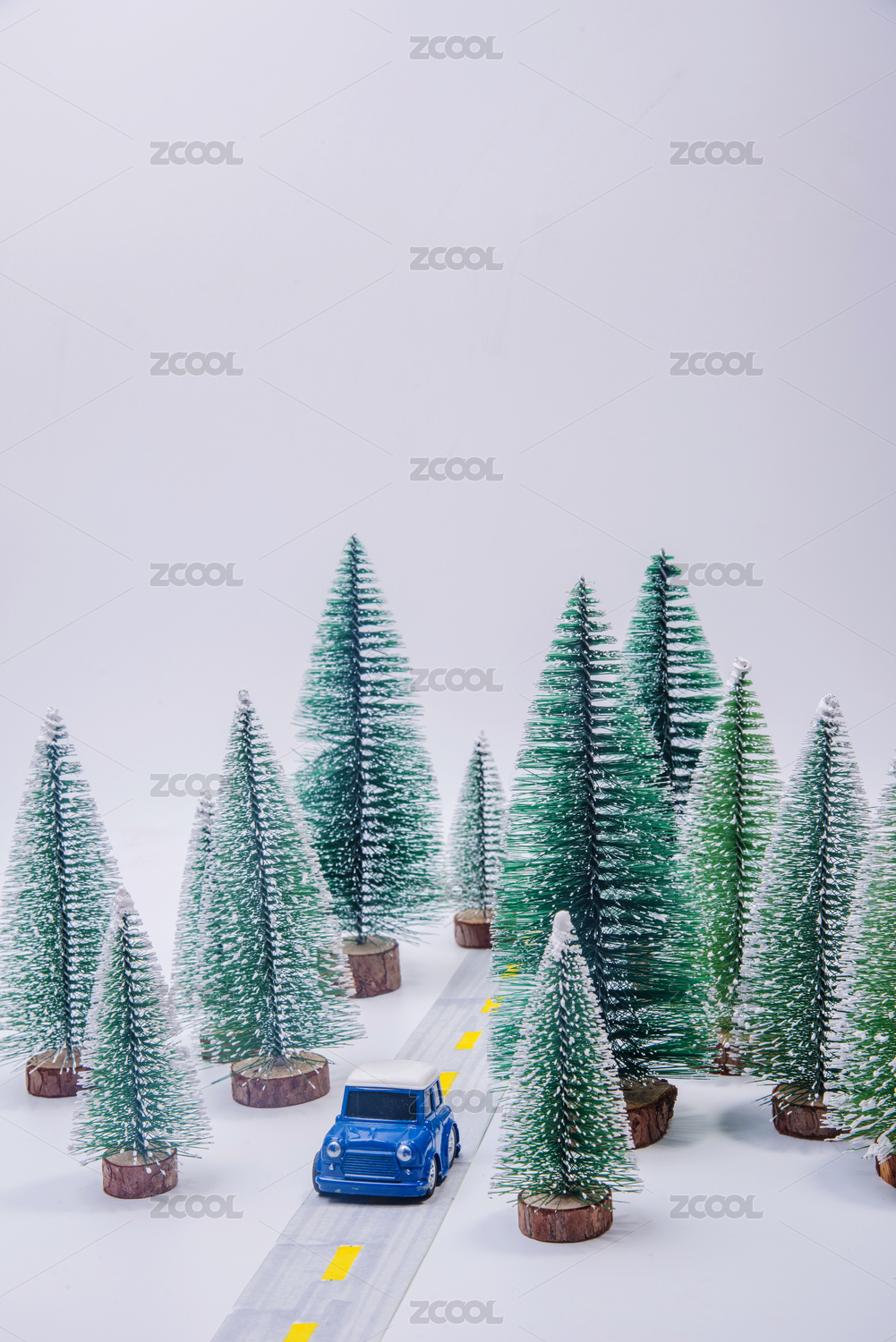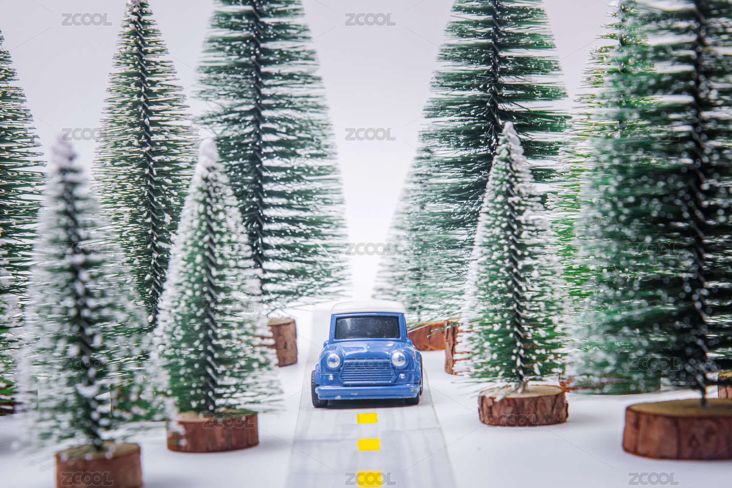 有圣誕雪松和小汽車的微縮場(chǎng)景