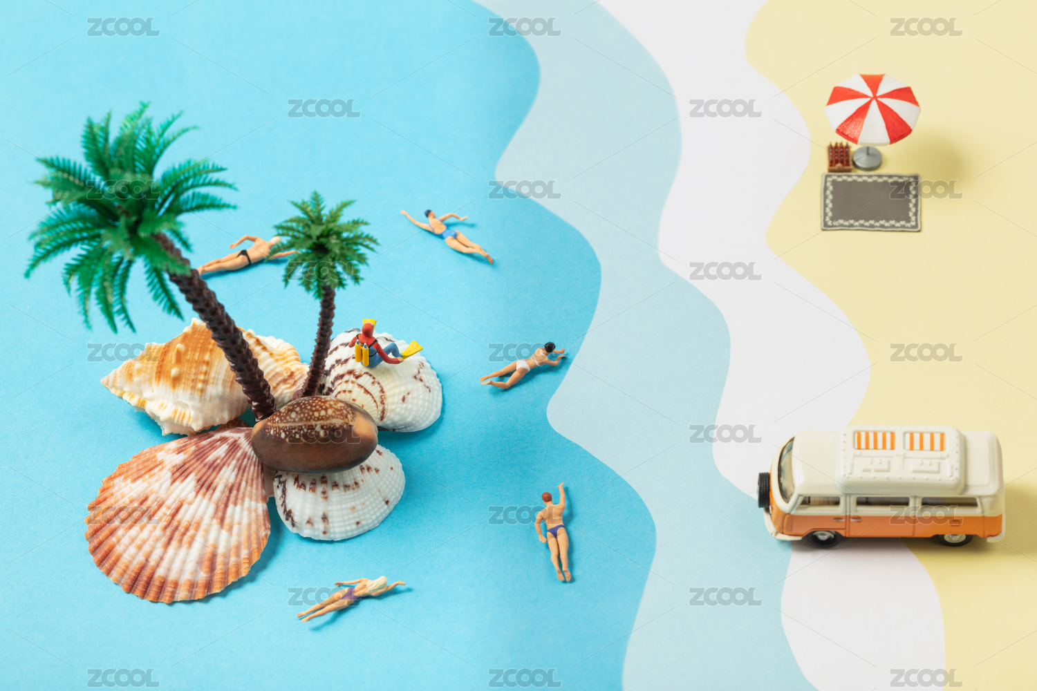 微縮場(chǎng)景夏天海灘海邊度假游泳潛水人群