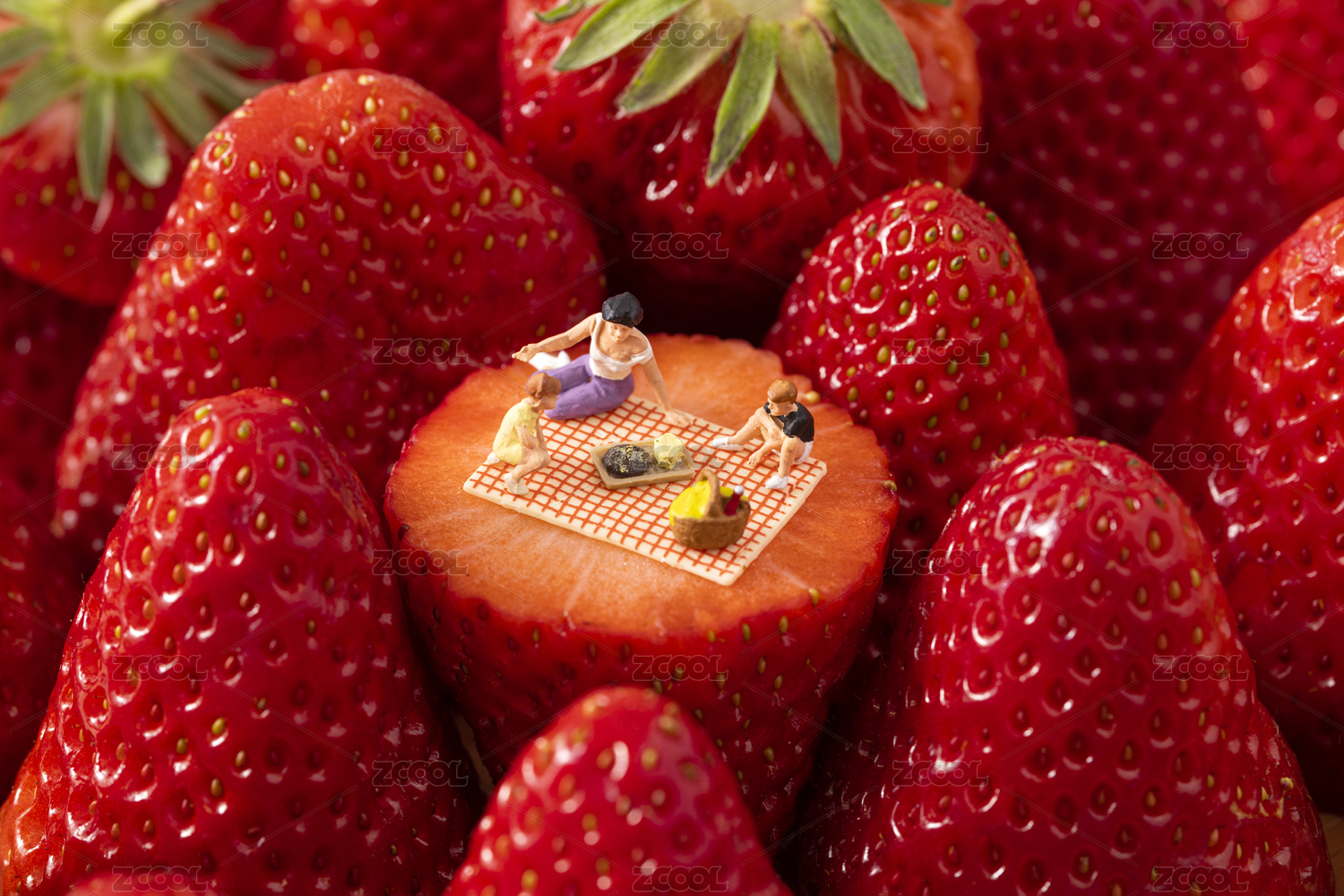 綠色背景上的枸杞和小人,微縮場(chǎng)景