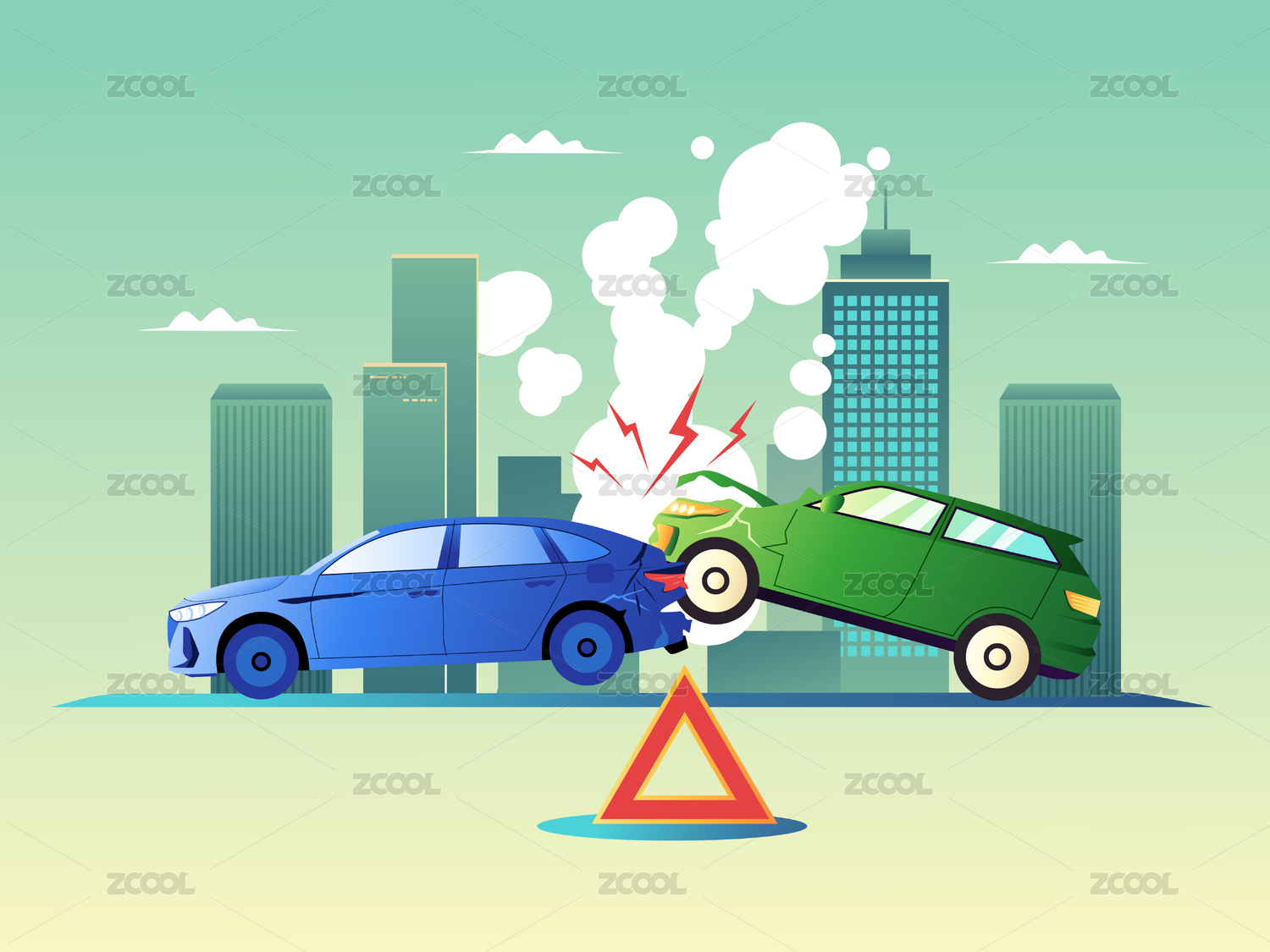 一個汽車撞上另一個汽車背景是城市矢量插畫