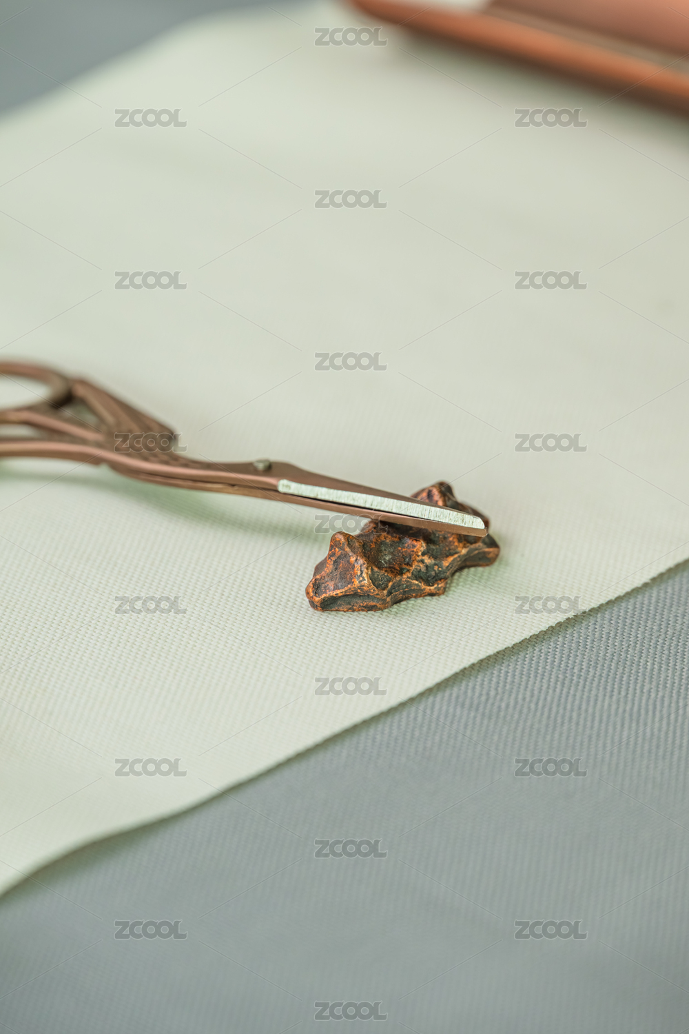 古銅色剪刀與布料上的星形裝飾