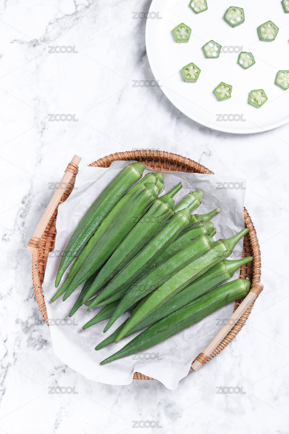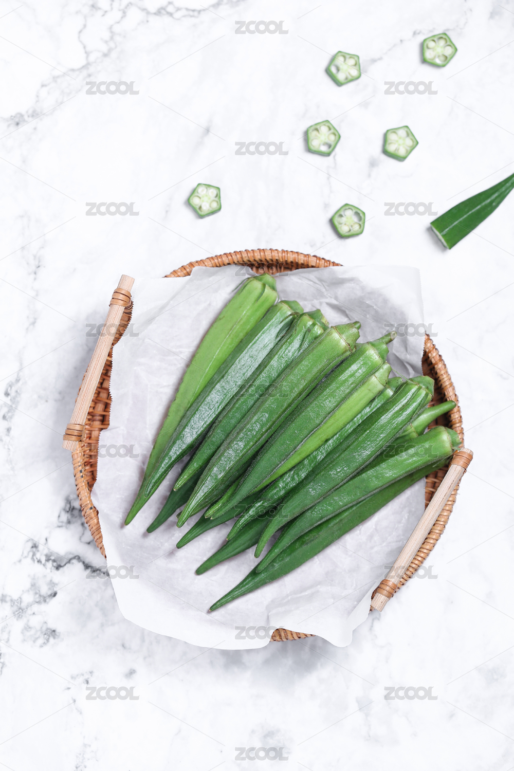 新鮮切開(kāi)的五角星形狀的秋葵