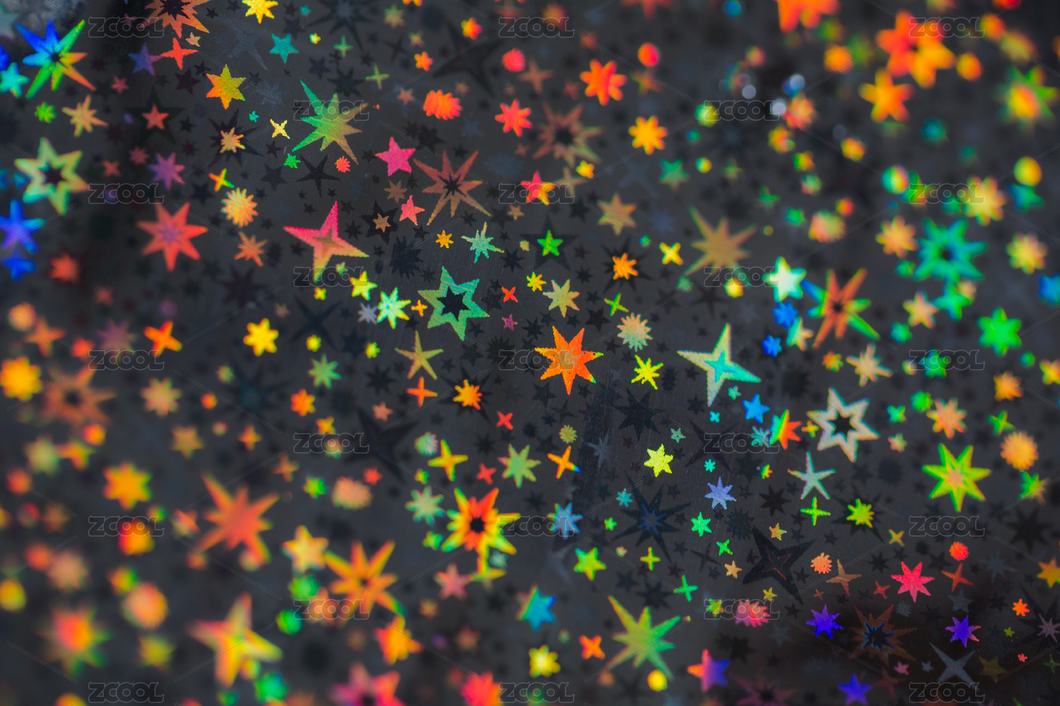 微距拍攝星形鐳射全息激光紙反射出的多重色彩