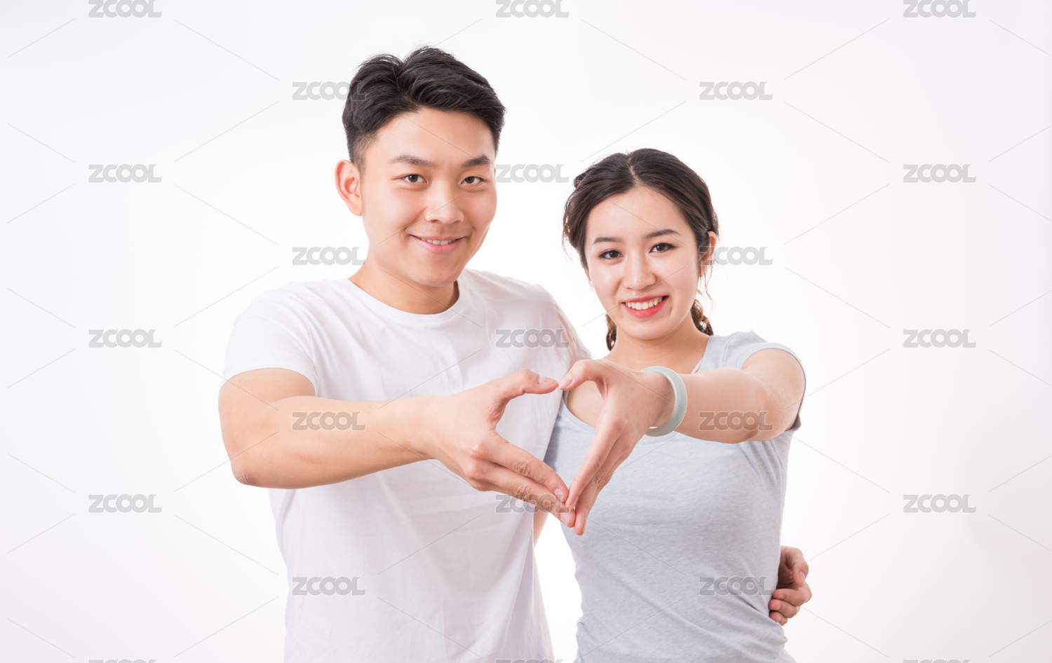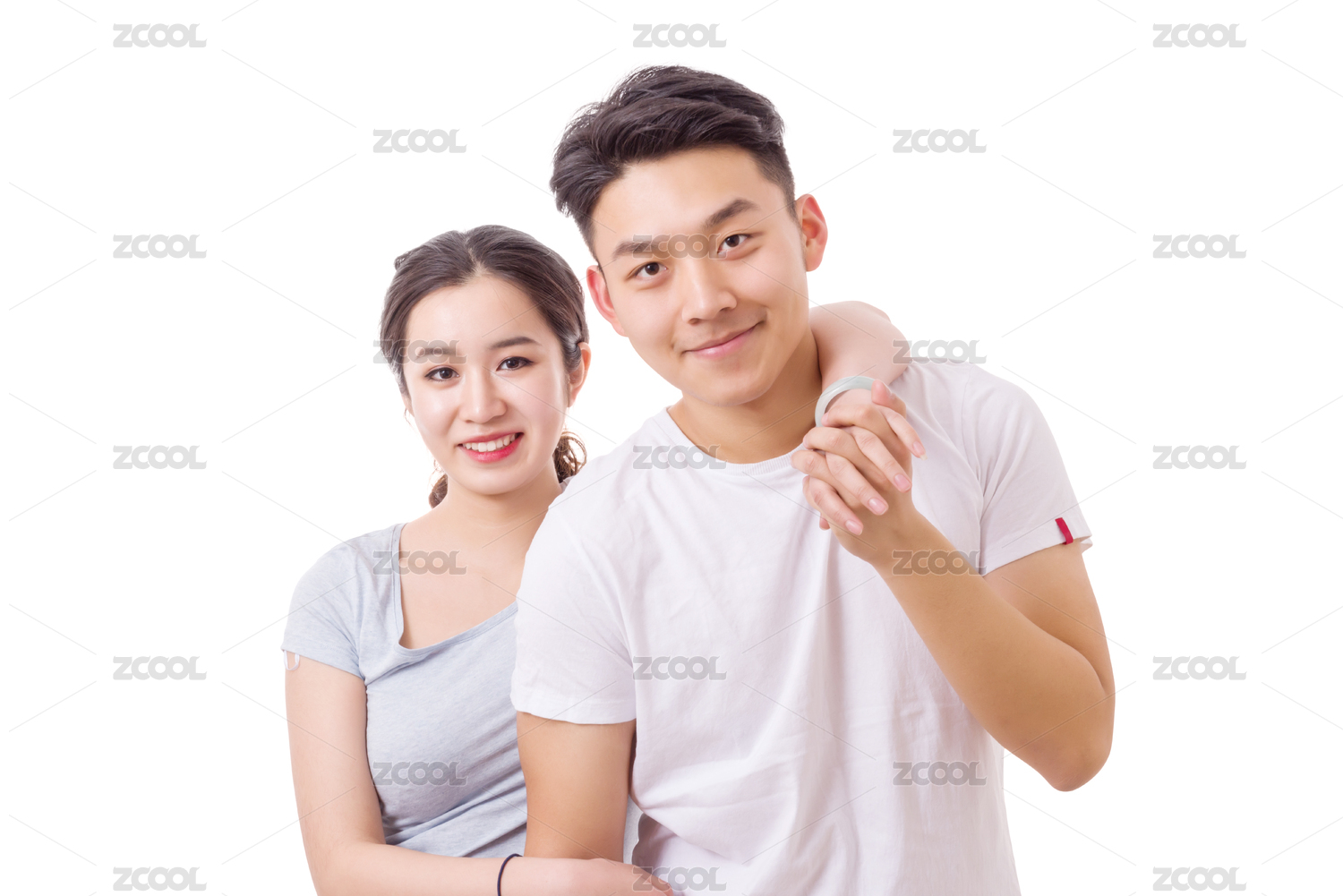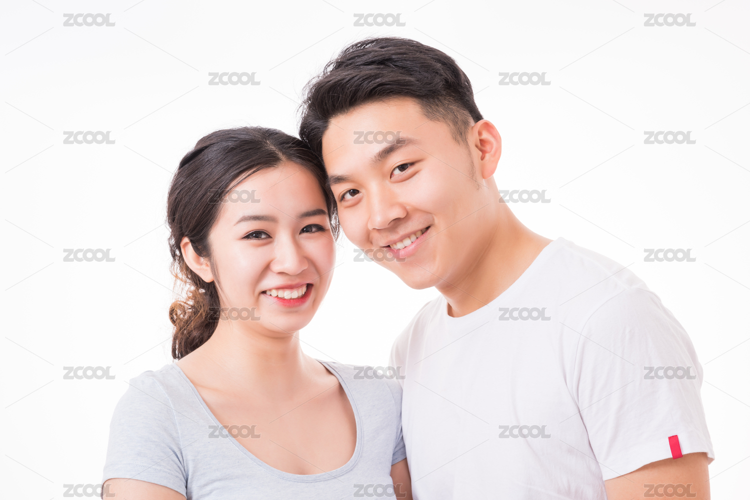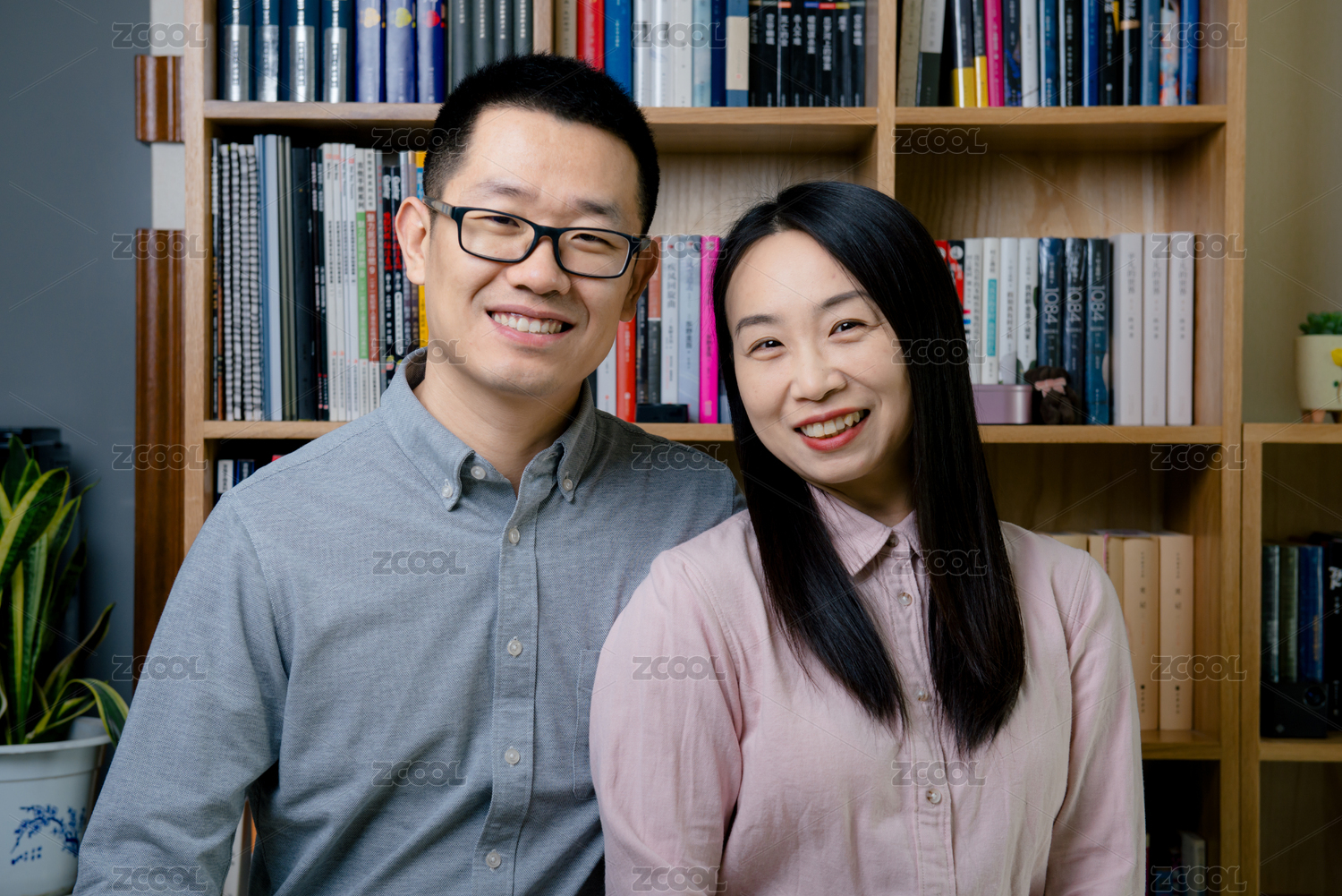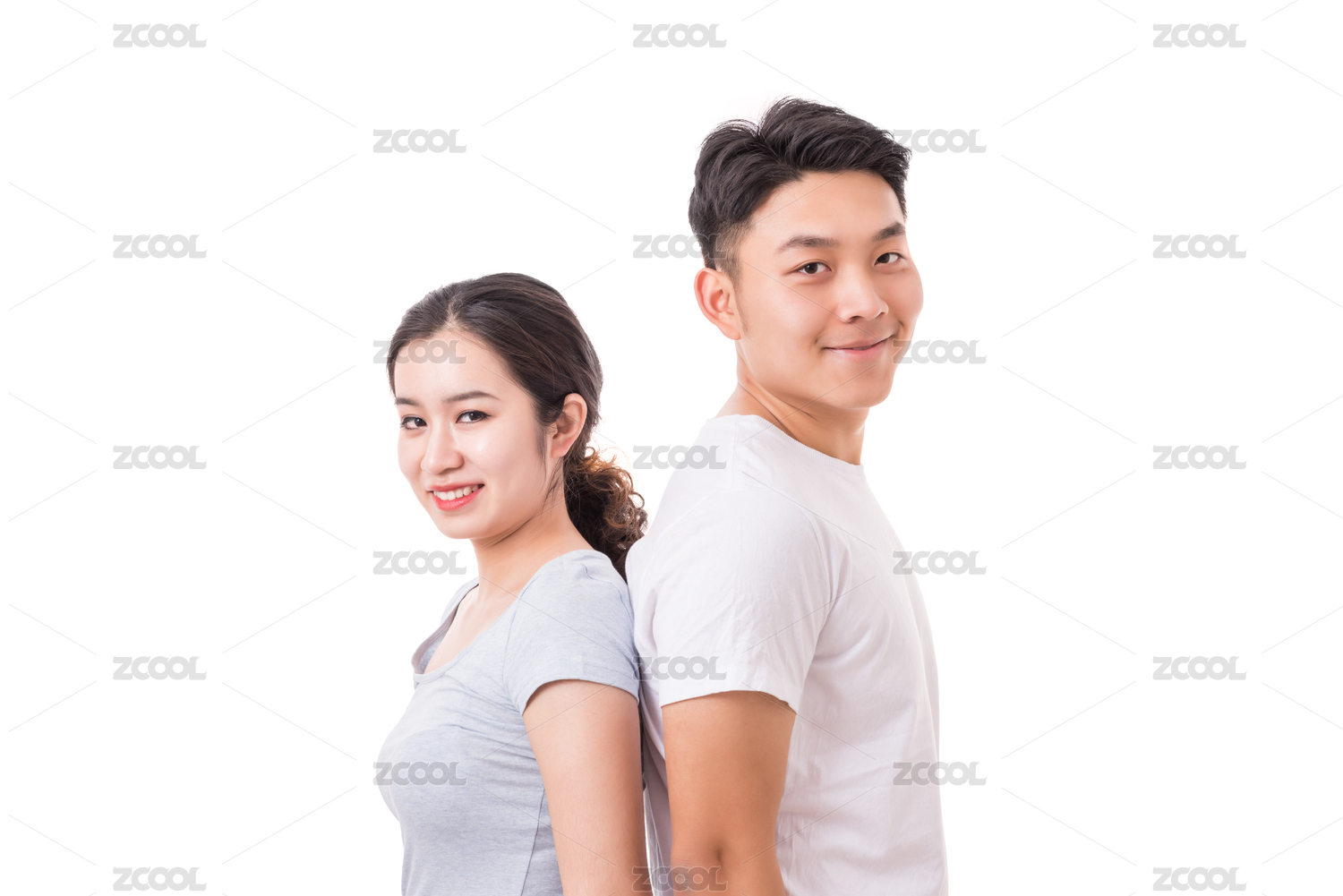 一對幸福的年輕夫妻背靠背看著鏡頭
