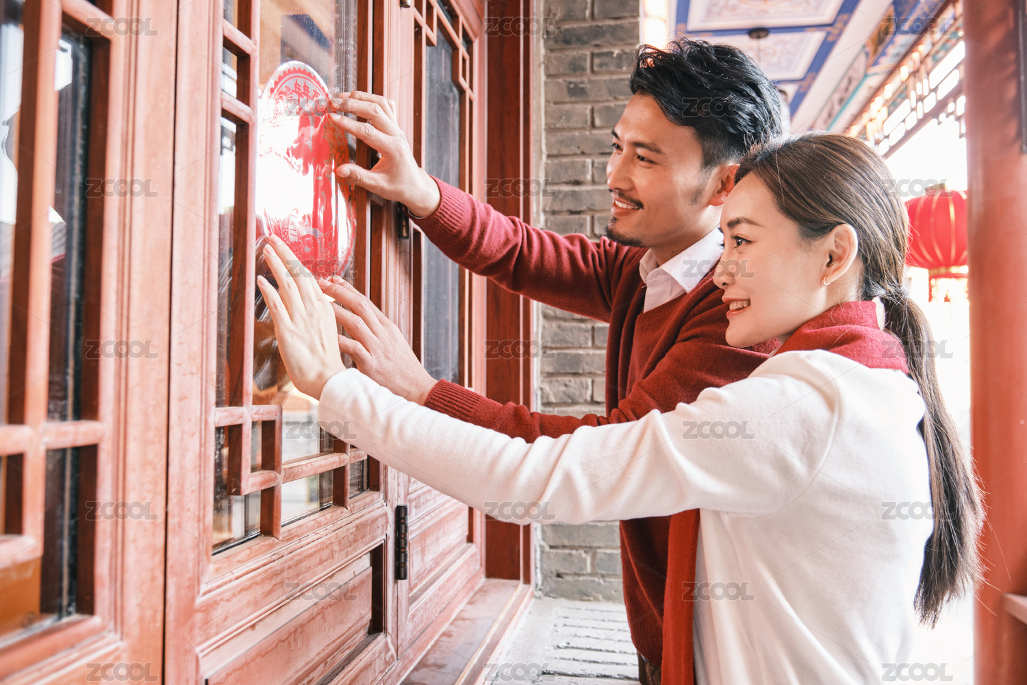 一對年輕的夫妻共同拿著一把鑰匙,新房子,家