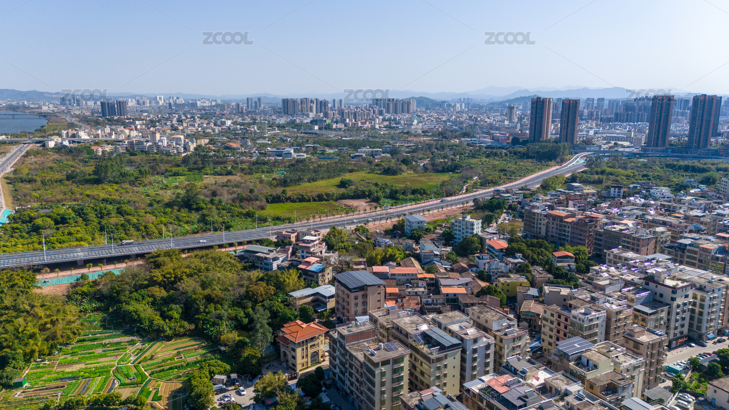 航拍白晝?nèi)f里無云的惠州現(xiàn)代化城市景觀